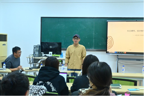 讨论环节中,同学们踊跃发言,与老师们探讨了自己对于本书相关的理解并提出问题。 姜老师积极回应大家的疑惑和讨论,他指出纪念碑的宏大永恒与礼器的精巧可携带形成鲜明对比,但其中都存在着纪念碑性。抽象的艺术风格并未影响历史文化的传承与延续,所谓的断裂背后其实隐含着一种连续性。中国古代本就同时存在着王室的、权威的、抽象的与大众的、世俗的、写实的艺术风格。放眼当今数智时代,物的充盈消解艺术价值,人也被逐渐还原为物,如何面对人类与AI双主体的问题十分值得反思。