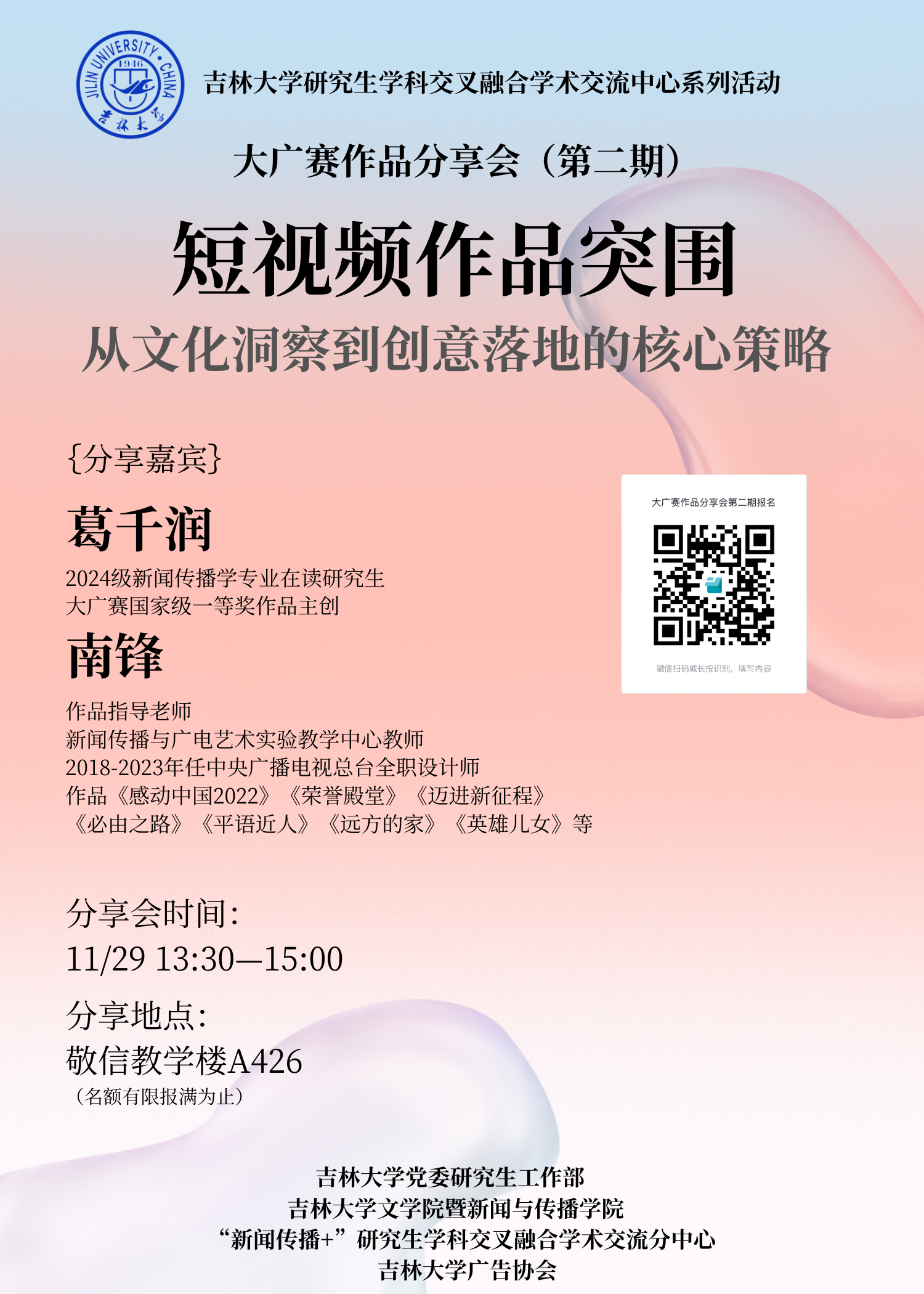 主讲嘉宾简介: 葛千润,开云官方网页版暨新闻与传播学院2024级新闻传播专业在读研究生,大广赛国家级一等奖作品主创。
