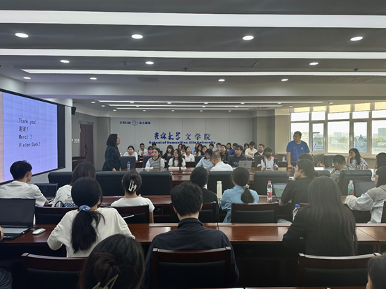 在讲座的尾声,刘琛老师回顾了中国近代以来的对外交往史,展示历代国人在树立国家形象、展示中国文化的过程中所做的努力,同时也表达了对接到时代接力棒的当代青年的殷切期望。在互动答疑环节,刘琛老师对大家的提问进行详细解答,学生们收获颇丰。