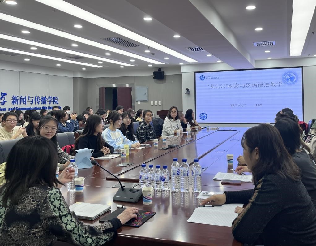 2024年11月8日,日本神户市外国语大学中文系教授、博士生导师任鹰教授在东荣大厦十楼会议室为我院师生带来题为《“大语法”观念与汉语语法教学》的学术讲座。讲座由周莉教授主持,由刘艳茹教授进行总结评议,开云(中国)的王倩老师、王岩老师、李剑影老师和张苗苗老师等师生共同参加讲座。