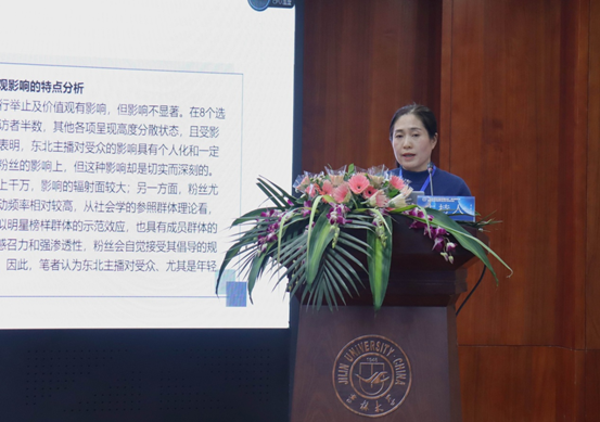 吉林省传播学会副会长兼秘书长周大勇教授主持了大会主题发言,吉林大学新闻与传播学院新闻学系主任刘坚教授、东北师范大学传媒科学学院张淑燕教授、浙江大学城市学院院长助理江根源副教授分别以《后传播时代的媒介文化构建》《东北网络主播形象表现的影响研究》《媒介建构现实:范式、范畴和命题》进行了主题发言。