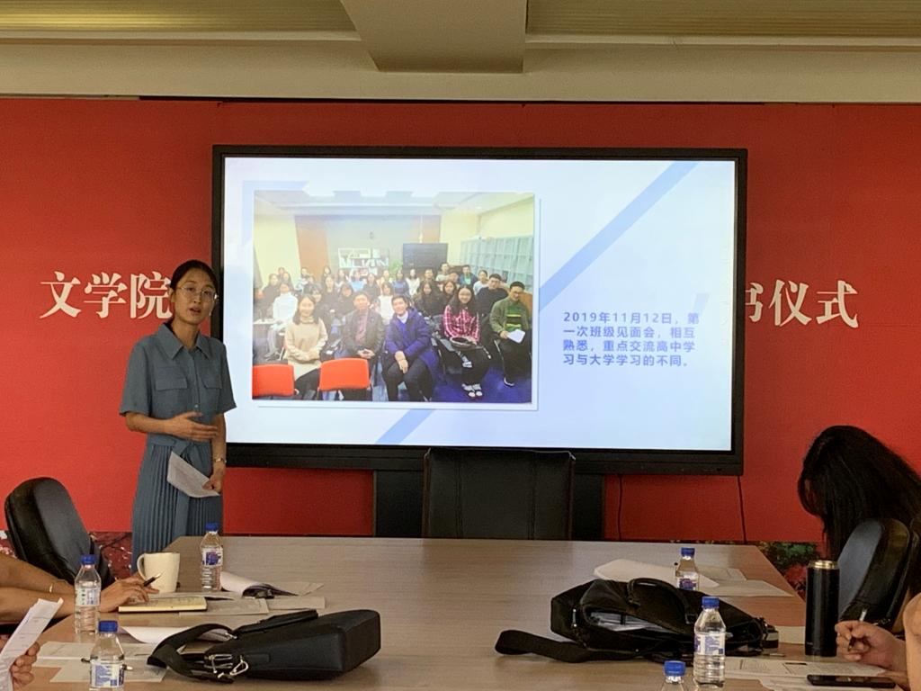 会上,26位本科生班主任依次述职,介绍其担任班主任期间的工作情况,各位本科生班主任围绕工作职责,从实际出发谈到工作中全面了解学生情况,关爱学生;协助辅导员做好对学生的教育和引导;教育引导学生做好生涯规划;开展学业辅导和学业帮扶;指导学生积极开展各类学术创新活动; 协助做好危机事件处置工作。各位本科生班主任在述职中还分享了举办班主任网络班会、组织专业实践活动、帮扶学生生活等方面的经验,深刻印证着本科生班主任制度是 “三全育人”综合改革建设的重要举措,彰显着班主任在大学生思想政治教育中的重要作用。