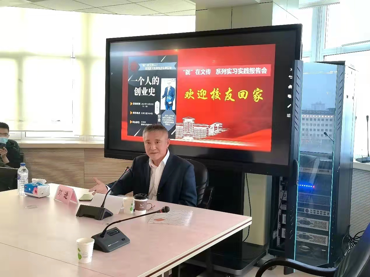 校友邹进先生为大家生动地讲述他一个人的创业史,同学们从他的分享中,更加坚定了应踏踏实实走好脚下的路,努力争做新时代所需的创新型人才,追求人生价值和社会价值的统一。