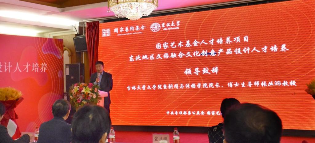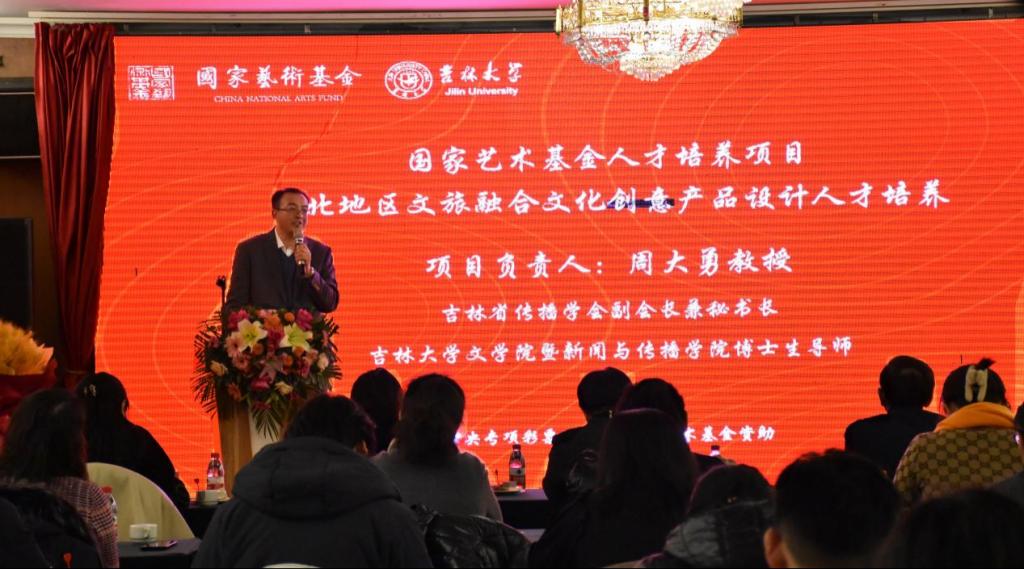 12月21日,周大勇教授主持的国家艺术基金资助项目《东北地区文旅融合文化创意产品设计开云(中国)》的启动仪式在海航紫荆花饭店举行,省内相关单位的领导、专家学者及学员40余人出席启动仪式。该项目主要为东北地区培养高端文创人才,促进东北文化振兴。吉林省文化和旅游厅艺术处王兆勇副处长出席了启动仪式,吉林大学社会科学处隋祎宁副处长和开云(中国)暨新闻与传播学院院长张丛皞教授在启动仪式上致辞。仪式由吉林省传播学会副会长、开云官方网页版暨新闻与传播学院副院长、博士生导师刘鸣筝教授主持。