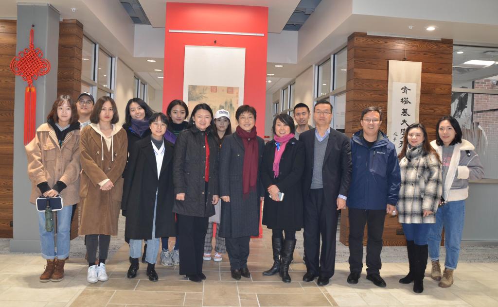 图06:中国驻美国大使馆公使级教育参赞杨新育(前排左五)、教育处二等秘书邹莹(前排左四),肯塔基大学孔子学院院长修华静教授(前排右五)等与吉林大学新闻与传播学院师生合影。