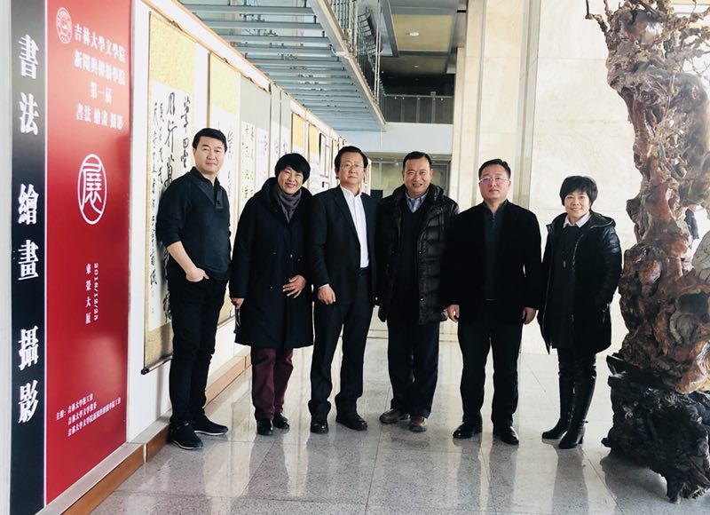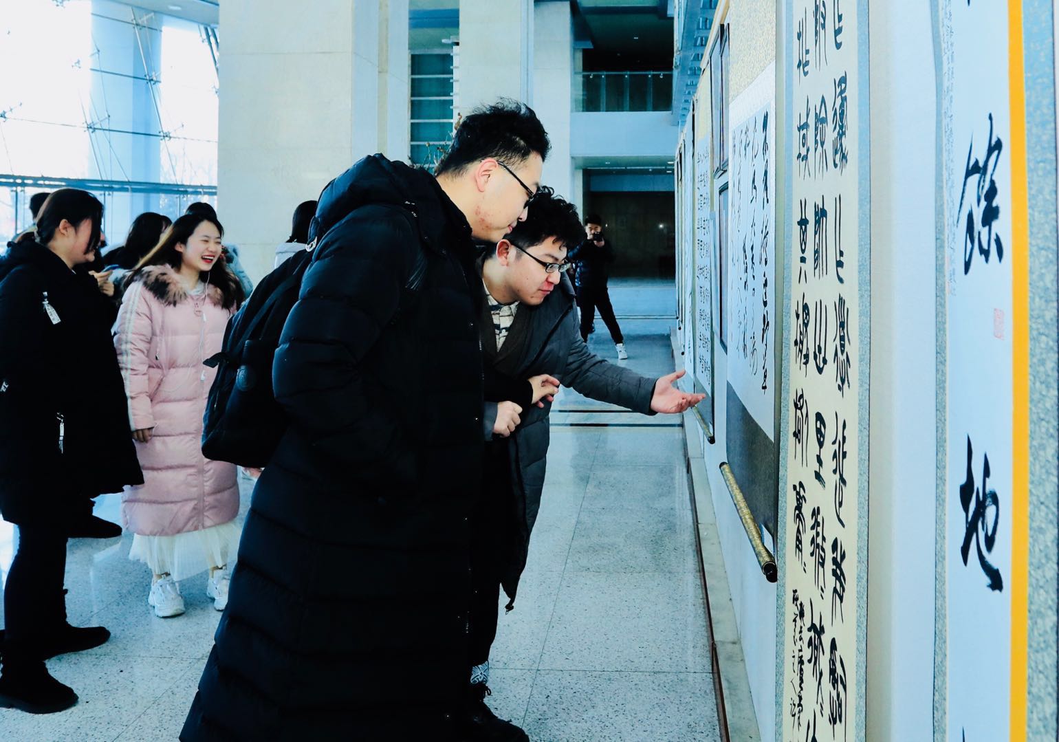 本网消息 为了展示我国书画文化和现代摄影的魅力,丰富师生的业余生活,活跃艺术创作,促进校园文化和精神文明建设,12月25日,开云(中国)暨新闻与传播学院在东荣大厦一楼大厅举办了该院第一届书法、绘画、摄影展。开展当天,吉林大学工会主席陆志东、副主席任波,开云(中国)院长徐正考、党委书记康永刚,开云(中国)副院长、工会主席刘艳、副主席田鹏等领导及师生代表一同观看了展览。