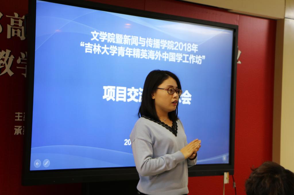 首先进行发言的是来自“中国古文字体验式学术工作坊乌克兰站”项目组的代表博士生孙启灿。该项目负责人是杨一博老师,团队是在徐正考院长、杨一博老师的带领下前往乌克兰首都基辅开展的学术交流活动。在前期准备阶段成员经过了严格的选拔和明确的分工,并制定了完善的计划。在活动实施的过程中,带队老师和乌方相关院校商谈了一系列合作事宜,并为乌克兰基辅国立大学中文专业的师生作了一系列精彩的报告会和讲座,徐正考院长《有容乃大——以汉语的包容性为例》的讲座,获得了乌方高校师生的一致好评。团队师生也先后在乌克兰一些学校举办了中国文化的交流展示会,例如“中国文字暨古文字书法艺术展”、“《有趣的甲骨文》汉字文化课”,并代表吉林大学参加了乌克兰汉语教师高级研讨会议。参加本次交流活动的学生在结束后进行了相关论文和调研报告的撰写,并制作了一个视频短片。这些成果得到了乌克兰驻华大使馆教育处王大军处长、吉大前任校长李元元教授等领导的肯定,新华网也对此次活动进行了报道。