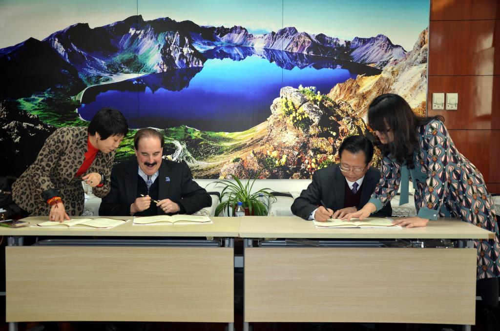 图2:马克院长(左二)与徐正考院长(右二)签署肯塔基大学文理学院与开云官方网页版合作意向书。