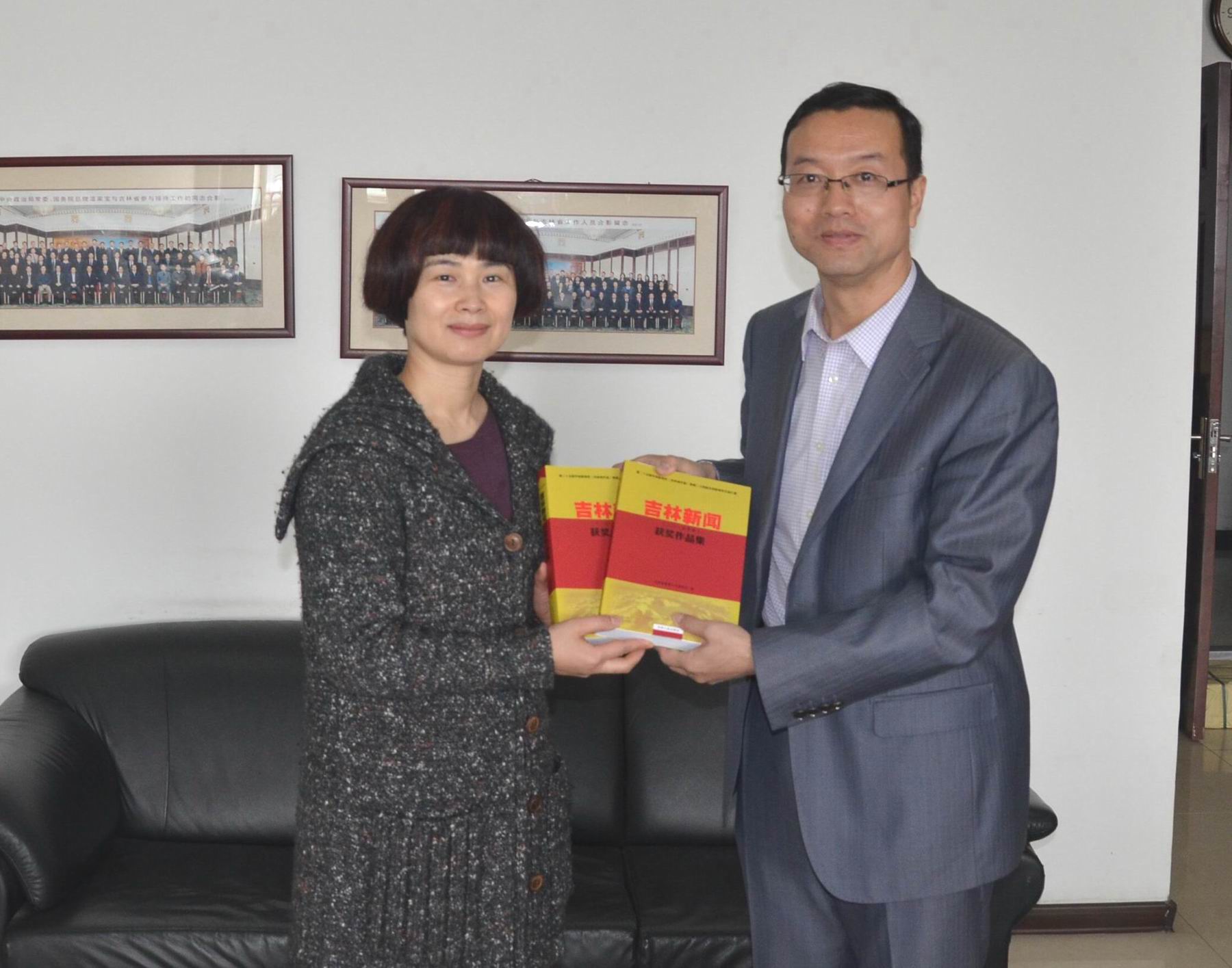 本网消息4月26日,为了支持吉林大学新闻与传播学院即将开展的第26届中国新闻奖初评工作,以及新闻教学与科研工作,吉林省新闻工作者协会(吉林省记协)向吉林大学新闻与传播学院赠送了42册《吉林新闻获奖作品集(2015年卷)》。《吉林新闻获奖作品集(2015年卷)》是由吉林省新闻工作者协会策划、组织和编辑,是吉林省第一次把年度获奖新闻作品汇编成册,该书集中收录了吉林省新闻界2014年优秀新闻作品,其中全文收录第二十五届(2015年)中国新闻奖吉林省获奖作品3件、吉林新闻奖一等奖作品111件,另将吉林新闻奖二、三等奖获奖作品篇目列表收录,这些作品代表了全省新闻工作者的突出业绩成果,记录了吉林省改革开放和经济社会的发展脚步,也是新闻教学与研究的优秀素材。图为吉林省新闻工作者协会秘书长胡莺(左)向吉林大学新闻与传播学院新闻系副主任严俊教授赠书。