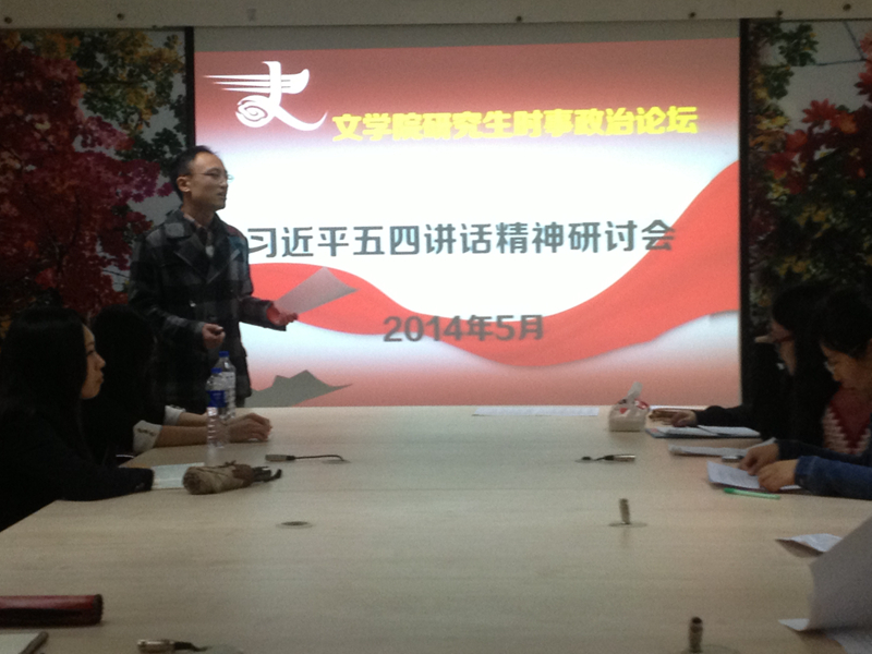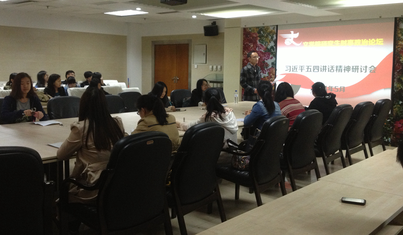 为了深入学习领会、全面贯彻落实习近平总书记五四青年节在北京大学的重要讲话,进一步理解社会主义核心观的丰富内涵,2014年5月15日下午6点30分,开云(中国)研究生团委在东荣10楼会议室,组织了习近平五四讲话精神研讨会。参加研讨会的有开云(中国)研究生团委副书记林栋,团委办公室副主任赵翊羽,以及参加第二十六期党课的所有党积极分子。