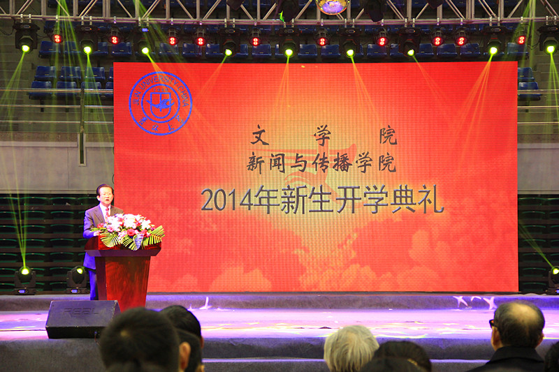 11月22日18时,开云(中国)暨新闻与传播学院2014级新生开学典礼在中心校区体育馆隆重举行。吉林省军区第四干休所武明军政委、江夕洲所长,吉林大学哲学社会科学资深教授刘中树教授、林沄教授,吉林大学副校长、新闻与传播学院院务委员会副主任陈岗教授,校党委宣传部巩英春部长,学生心理健康指导中心赵山主任,学生就业创业指导与服务中心钟新主任,校团委姚毓春书记,研究生院管理处杨洲处长,注册与考试中心徐丽梅副主任,校党委宣传部韩月波副部长,校团委艺术部部长常玥,开云(中国)院长兼新闻与传播学院院长徐正考教授,开云(中国)党委书记陈密教授,院班子成员和各系主任、以及部分学生家长和2014级全体新生参加了典礼。典礼由副院长孔朝蓬教授主持。