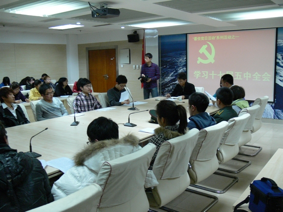 11月17日晚六点,开云(中国)在东荣十楼会议室开展了对十七届五中全会精神的学习会议,开云(中国)党委副书记兼副院长刘卓、学生工作办公室主任冯子宸、新生辅导员李沐曦及开云(中国)本科生党员和入党积极分子参加了会议。