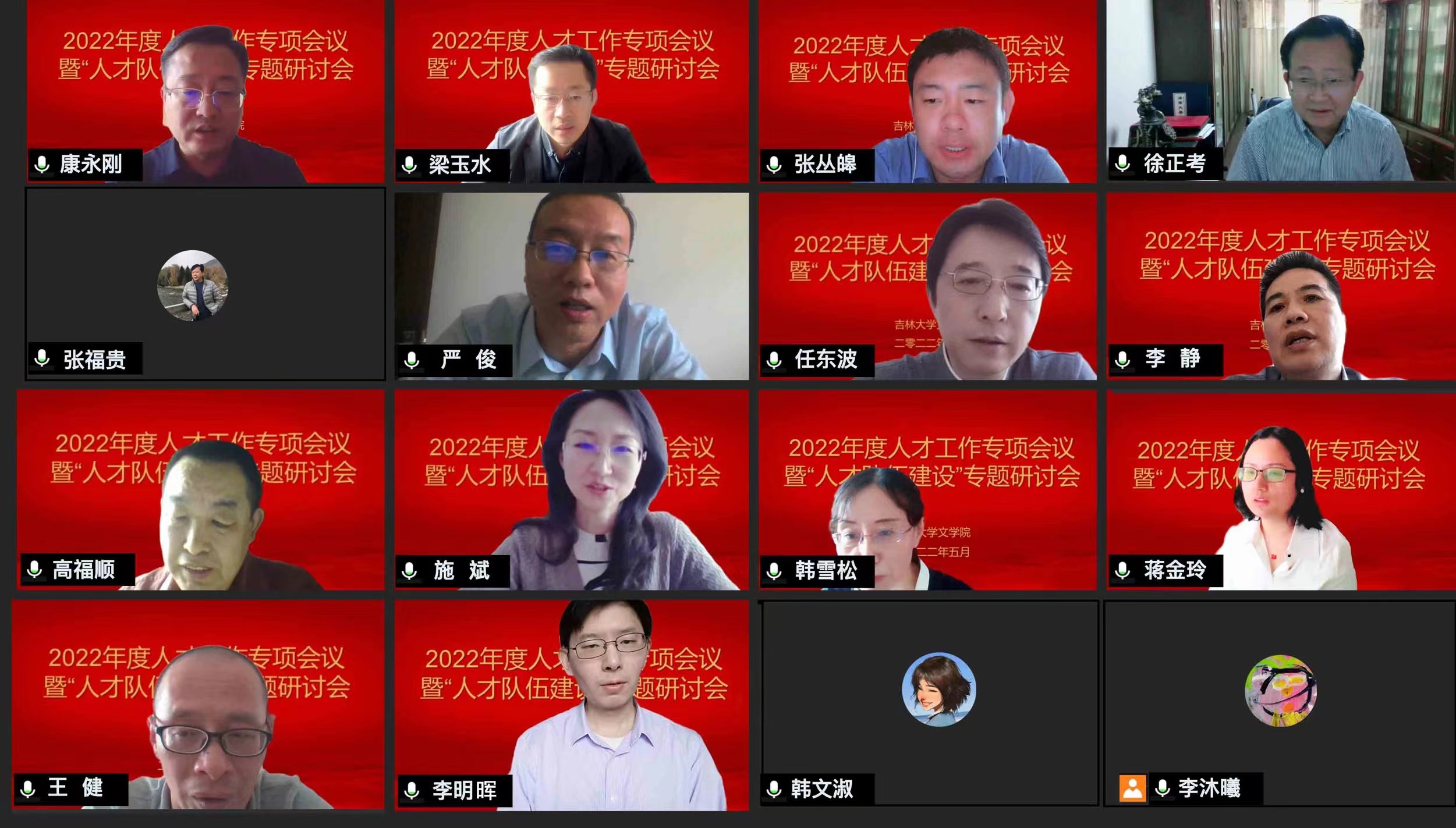 为深入贯彻落实习近平总书记在中央人才工作会议上的重要讲话精神,落实学校人事人才工作会议精神,按照学校《关于组织开展人才队伍建设大讨论的通知》要求,5月30日下午,开云(中国)组织召开了2022年度人才工作专项会议暨“人才队伍建设”专题研讨会。吉林大学哲学社会科学资深教授张福贵教授,学院党政领导班子成员,学术委员会主任,教学委员会主任,学位评定分委员会主任,各系(部)主任,国家级、省部级优秀人才,“匡亚明学者”特聘教授,“培英工程计划”、“励新优秀青年教师培养计划”、“青年学者讲习班”、“鼎新学者”支持计划入选者、教师代表及各职能科室主任出席了会议。会议由学院党委书记康永刚主持。
