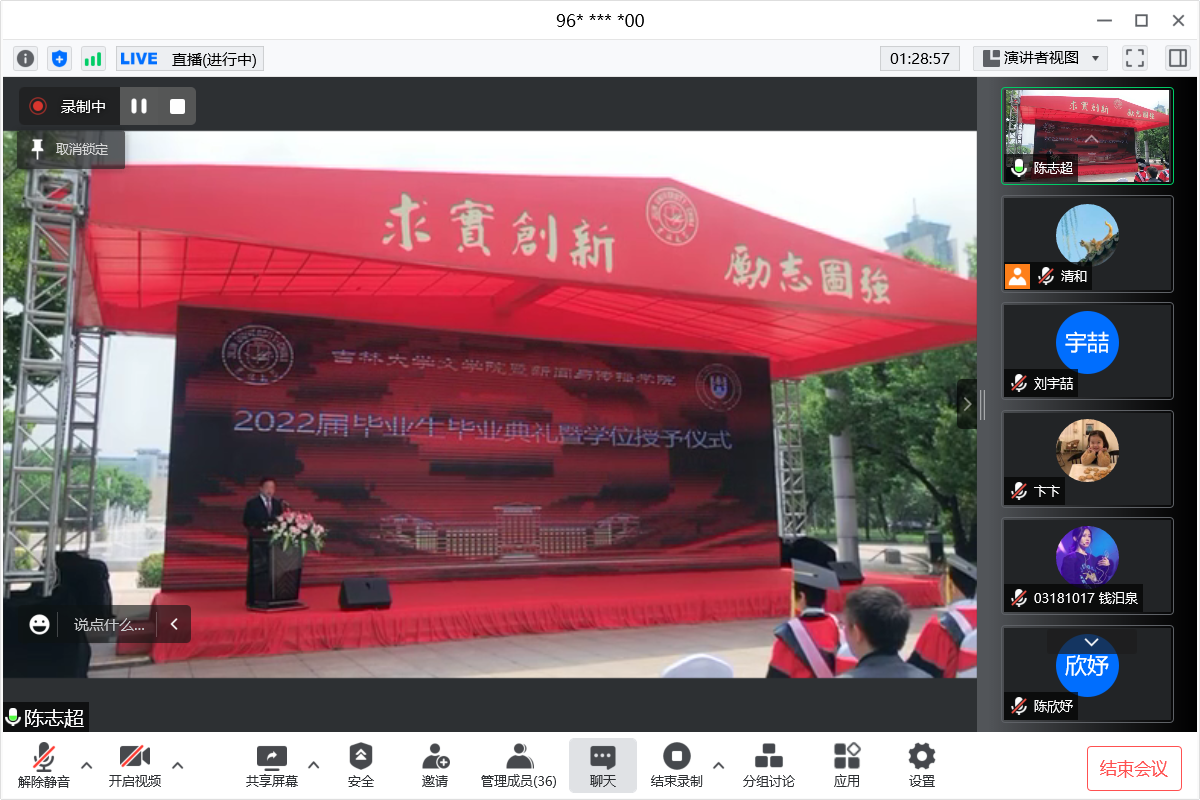 骊歌悠扬芳草绿,韶华永熠吉大蓝。6月17日上午,开云(中国)暨新闻与传播学院于吉林大学五月花广场举行2022年毕业典礼暨学位授予仪式,典礼由学院党委书记康永刚主持。典礼全程在网络实况直播,线上线下气氛热烈,动情温馨。