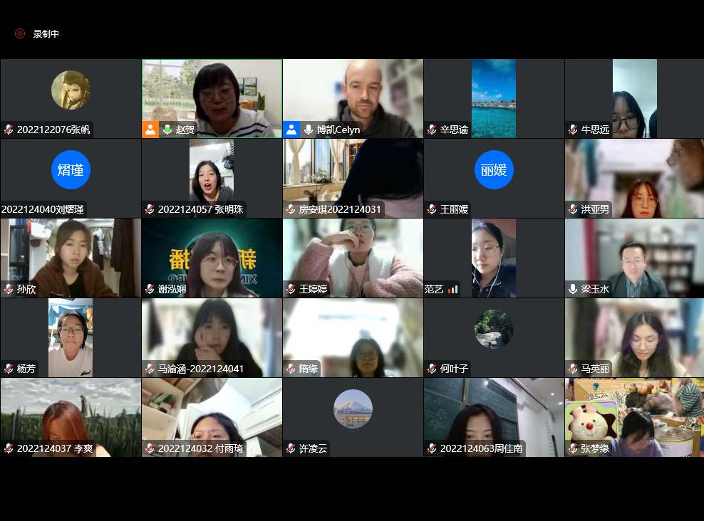 最后,梁玉水教授表示共创艺术就是共创家园,艺术家的课堂发言,本身也是一种艺术的存在方式,Celyn的艺术分享是实践性共创艺术的一种重要呈现形式。在场师生受到梁玉水教授评议的启发,纷纷打开视频,以此表达对主讲人Celyn和评议人梁玉水教授的感谢与敬意,也从实践角度传递了自己对共享艺术社群创作的理解。