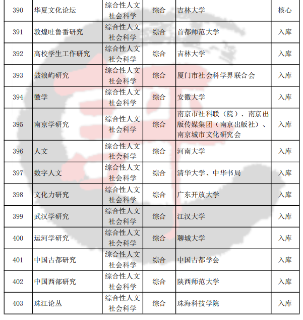 《华夏文化论坛》此次入选高校综合性学报类“核心期刊”,意味着本刊同时拥有两大核心期刊:南大CSSCI来源期刊和中国人文社会科学核心期刊的称号,标志着办刊质量有了较大的提升。