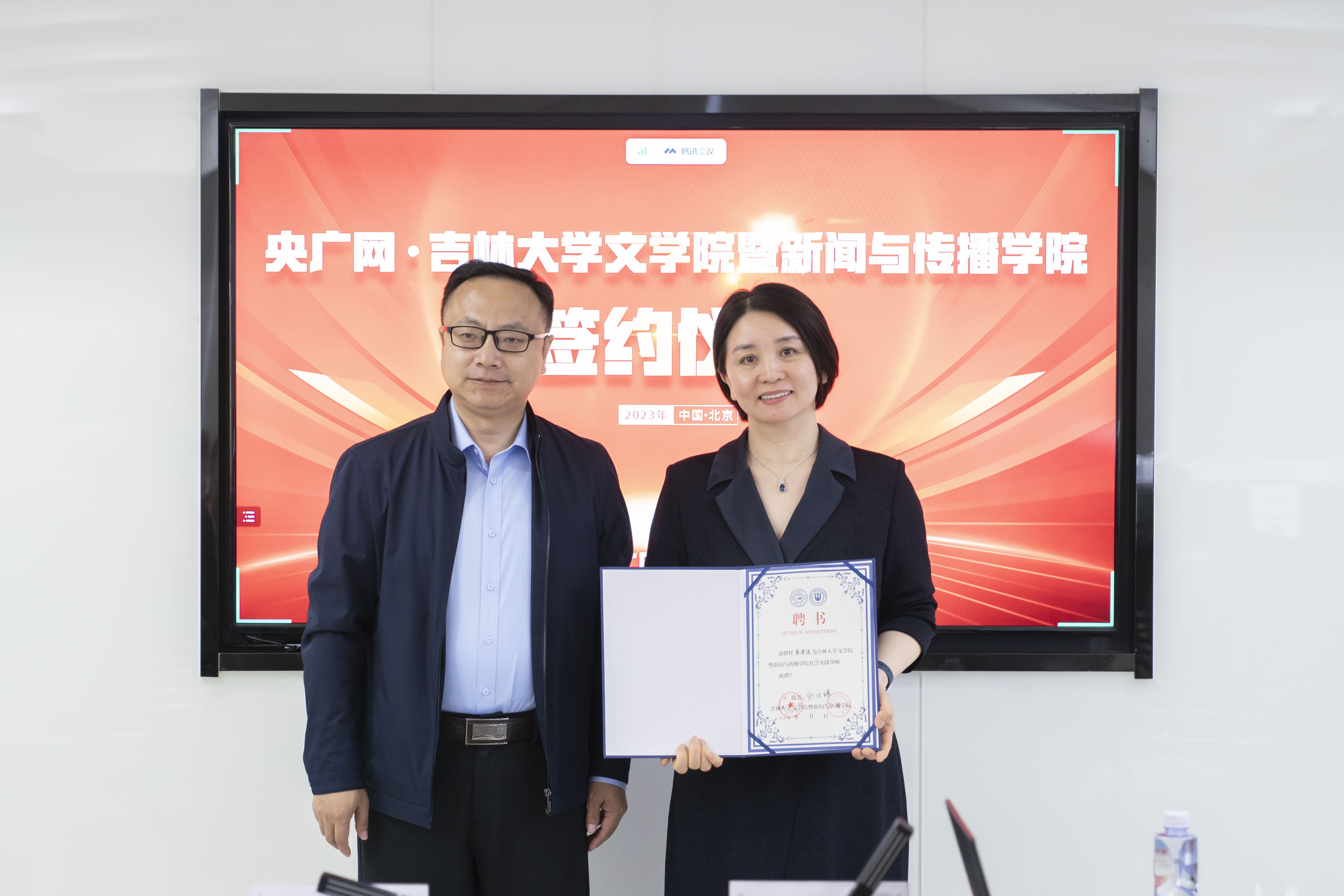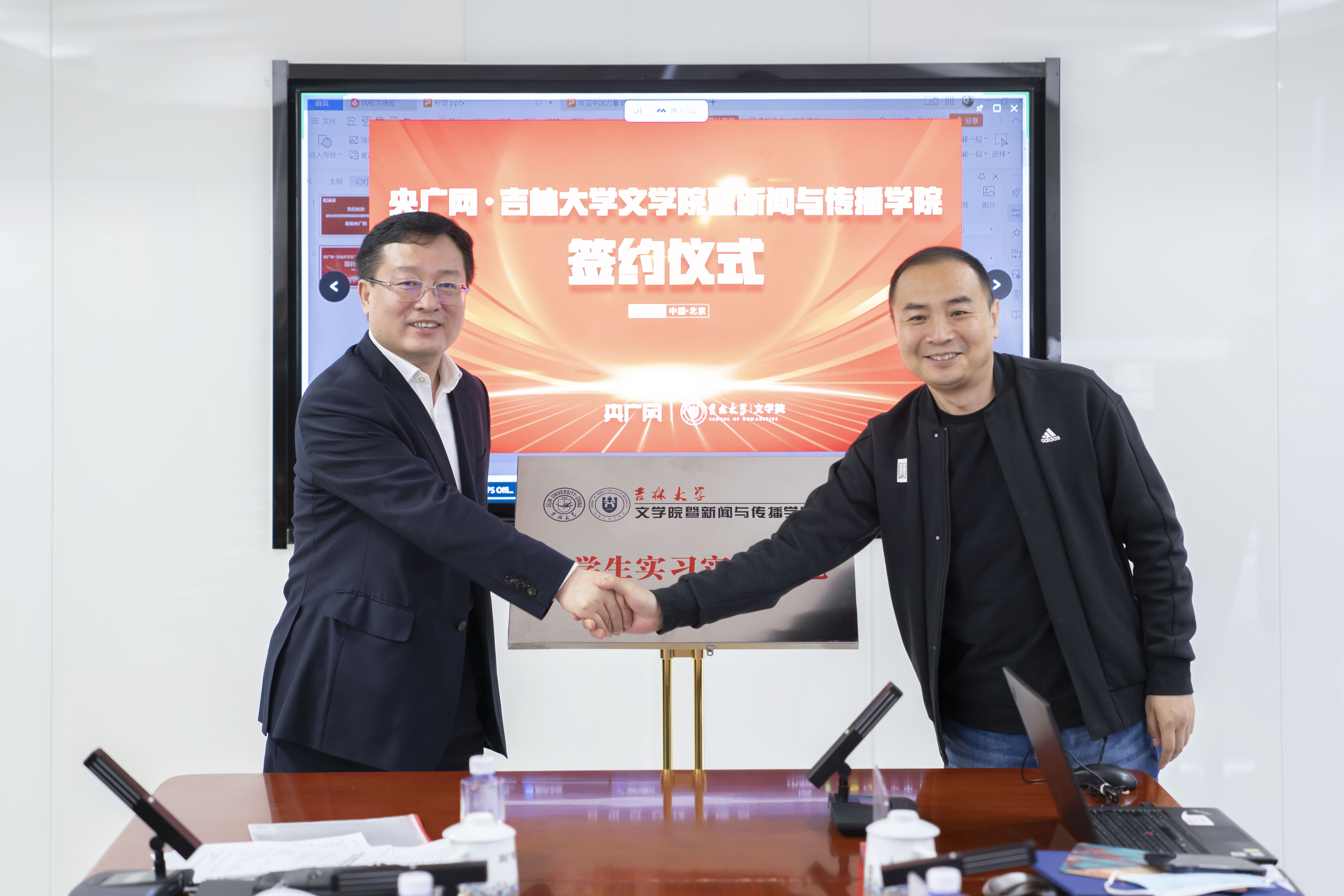 央广网副总编辑伍刚、副总经理宫歆慧、人力资源高级总监汪潇、央广网吉林分公司负责人邢程,开云官方网页版副书记杨一博、院长助理、校友办主任田鹏,学工办主任李芊满、新闻学系主任严俊教授等出席签约仪式。