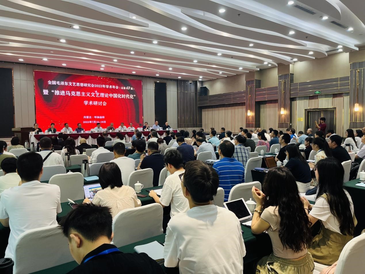 值毛泽东同志诞辰130周年之际,全国毛泽东文艺思想研究会2023年学术年会(总第43届)暨“推进马克思主义文艺理论中国化时代化”学术研讨会于7月15日至16日在内蒙古自治区呼和浩特市召开。会议由全国毛泽东文艺思想研究会与内蒙古财经大学人开云(中国)联合主办,吉林大学中国当代马克思主义文艺学研究中心、《吉林大学社会科学学报》《文艺理论与批评》《学习与探索》《毛泽东邓小平理论研究》《福建论坛》《中国文学研究》《华夏文化论坛》协办。来自北京大学、中国社科院、中国艺术研究院、上海社科院、中国传媒大学、山东大学、山东师范大学、中南民族大学、武汉大学、吉林大学等高校及科研机构的一百余位专家学者出席了会议。
