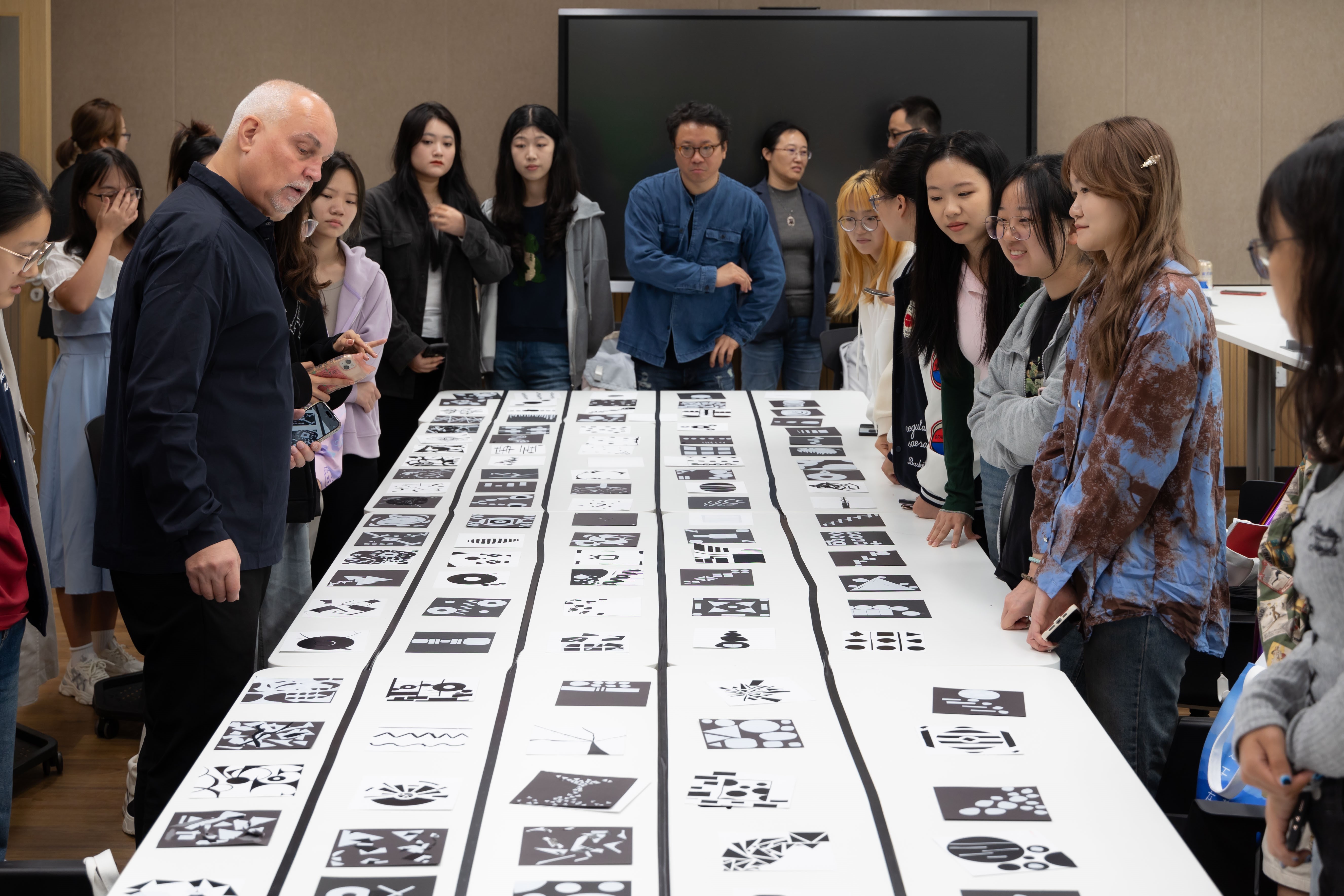 9月22日,Markus Weisbeck教授和Vera Kunz教授逐一点评作品并指导同学们进行修改,完成修改后,教授将同学们的作品放在一起,请大家讨论选出自己最喜爱的作品。在几位同学发言后,Markus Weisbeck教授和Vera Kunz教授强调,设计的“好”与“不好”是主观判断出来的,没有固定的标准;艺术要从个人感受中阐发,永远也不要忘记创作时的感受。