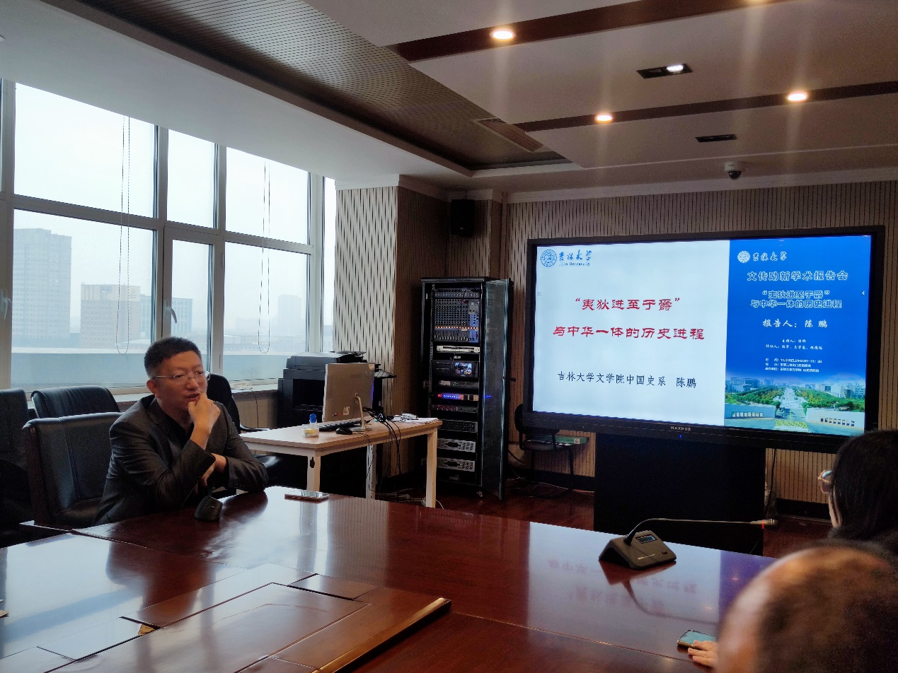 吉林大学“励新优秀青年教师”培养计划入选者、匡亚明青年学者、中国史系陈鹏副教授作了题为“‘夷狄进至于爵’与中华一体的历史进程”的学术报告。报告中,陈鹏副教授从制度史角度,对“中华一体的历史进程”展开讲述。他以“中华一体”为纲,分享了关于历史上华夏王朝册封体制与边疆族群“华夏化”、边疆民族政权“中国化”与政治名号改制、北族政权藩属体制与边疆族群“中国化”等问题的思考。