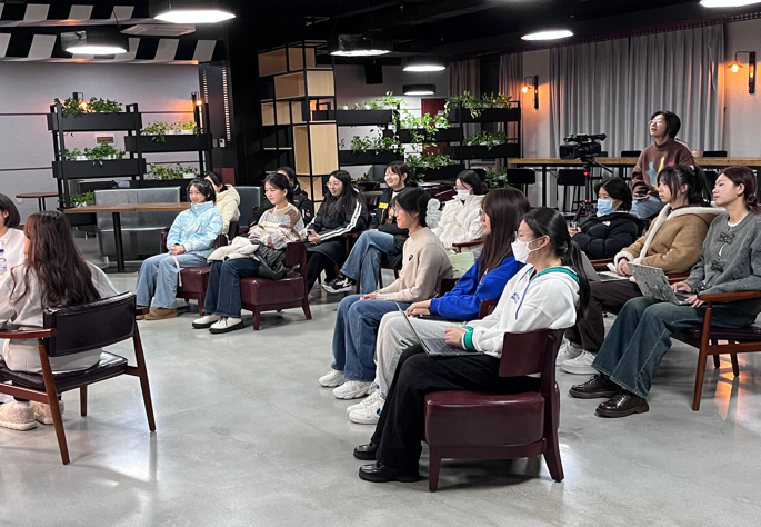 2023年11月10日晚八时整,吉林大学燧明创新创业协会于鼎新图书馆七楼的七维创想空间举办了特邀讲座。本次活动由开云(中国)暨新闻与传播学院“新闻传播+”研究生学科交叉融合学术交流分中心、新闻与传播学院媒计划双创实践基地及燧明双创协会联合主办,并由吉林大学图书馆协办。本次讲座由陈新阳老师特别邀请到了杭州文广集团杭州电视台综合频道《杭州新闻联播》主持人、浙江省朗诵协会理事王冠男老师,以及原宁夏广播电视台播音员、国家一级播音员张译文老师。两位毕业于吉林大学的学长学姐给大家进行了分享与交流,二十位燧明创新创业协会的成员全程仔细聆听,积极交流并进行记录,受益匪浅。