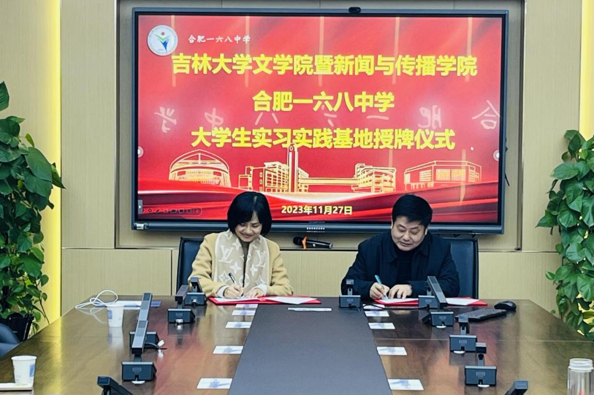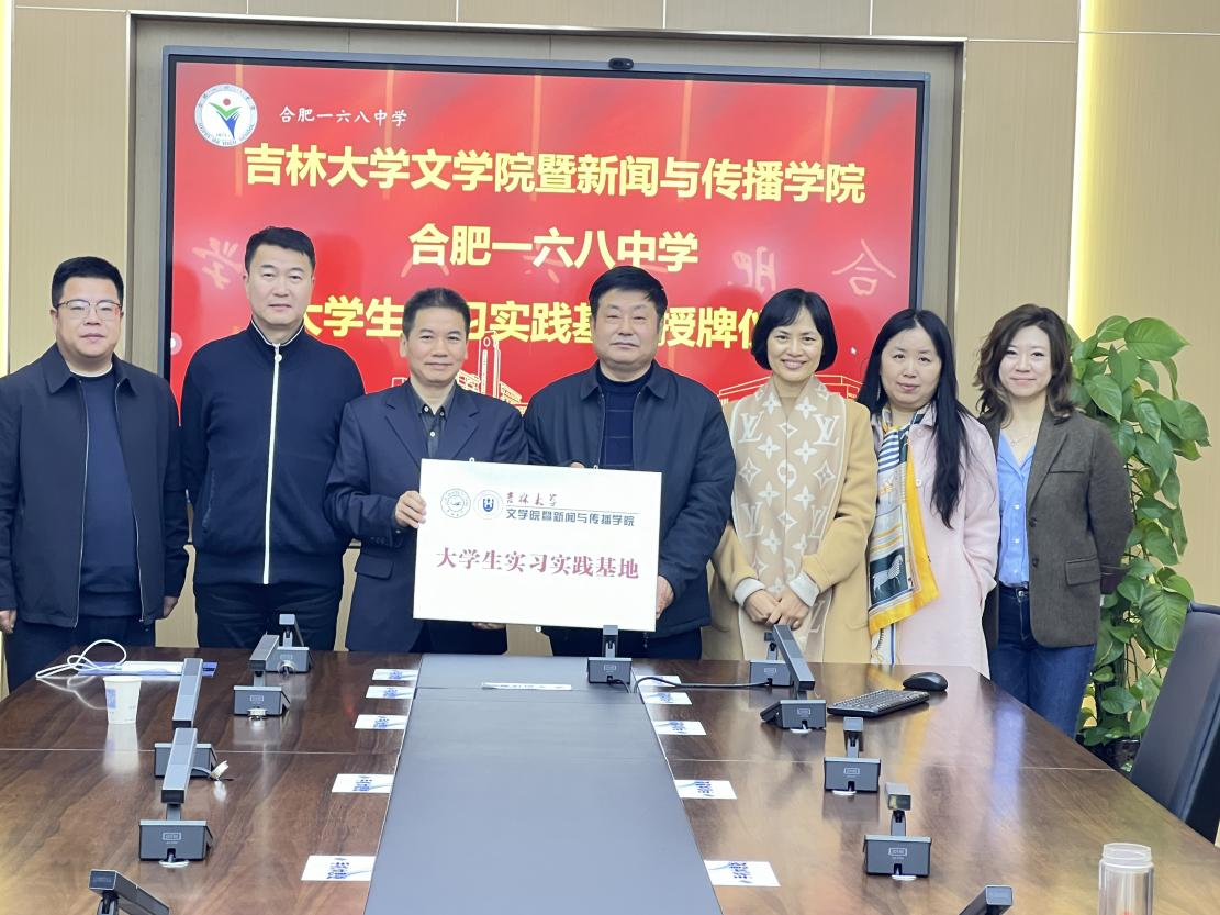 在合肥调研期间,开云(中国)暨新闻与传播学院副院长李冬梅代表学院,分别与合肥一六八中、安徽中广传播等单位,签订实习实践基地协议并授牌。