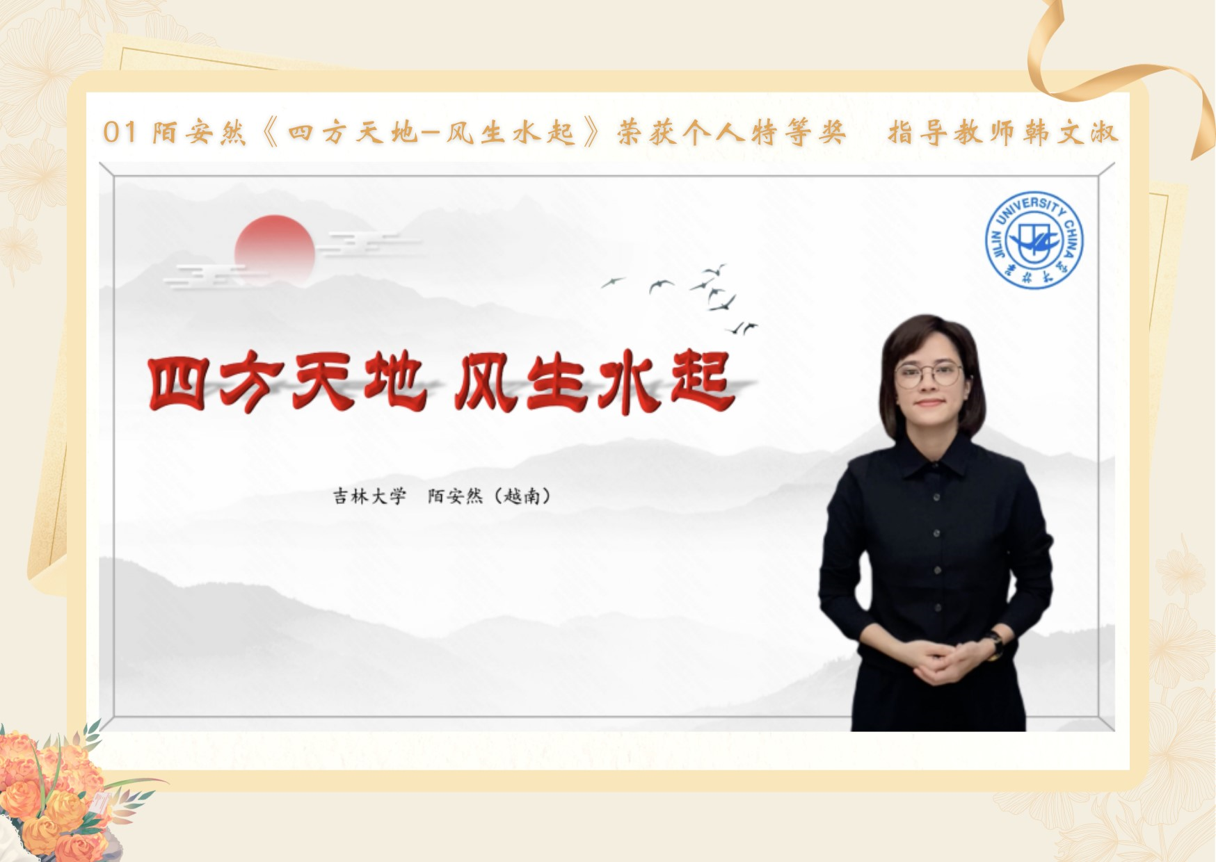 开云官方网页版/国际语言学院师生在激烈角逐中再创佳绩,共有11件作品获奖,包括“文化类-学生组(个人赛)”特等奖1项、二等奖3项、三等奖2项;“文化类-学生组(团体赛)”二等奖1项、三等奖2项目、优秀奖2项。另外,吉林大学荣获“最佳组织奖”,韩文淑教授获得“最佳指导教师奖”,充分展现了我校国际中文教育专业的培养成效。