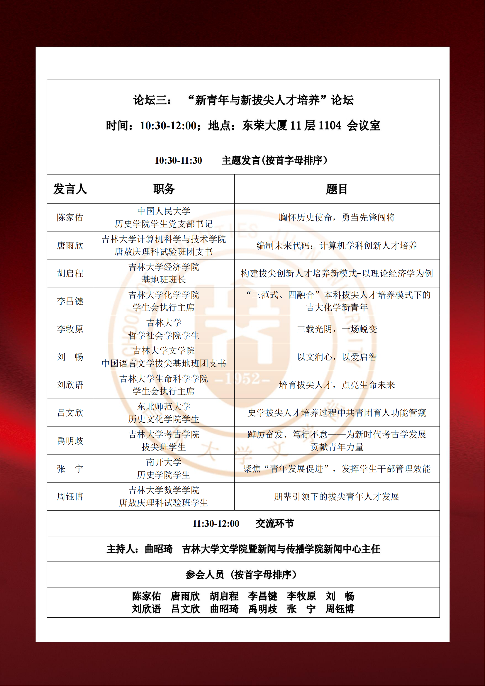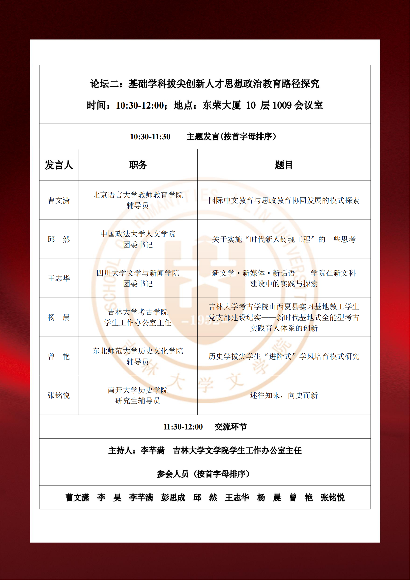 本次联学论坛围绕“党建引领拔尖开云(中国)”“基础学科拔尖创新人才思想政治教育路径探究”“新青年与新拔尖开云(中国)”等主题设有三个分论坛。