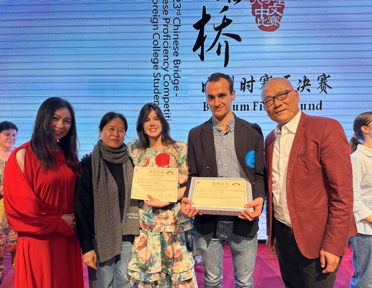 4月28日, “汉语桥”比利时赛区决赛在布鲁塞尔中国文化中心举办,我院教师李莉莉经由中国驻比利时使馆教育处推荐担任大赛主持人,由于此前一段时间李老师的悉心指导,加之主持人也正是自己熟悉的老师,大大减轻了何杰明的紧张情绪,顺利拿下了比利时赛区总冠军。