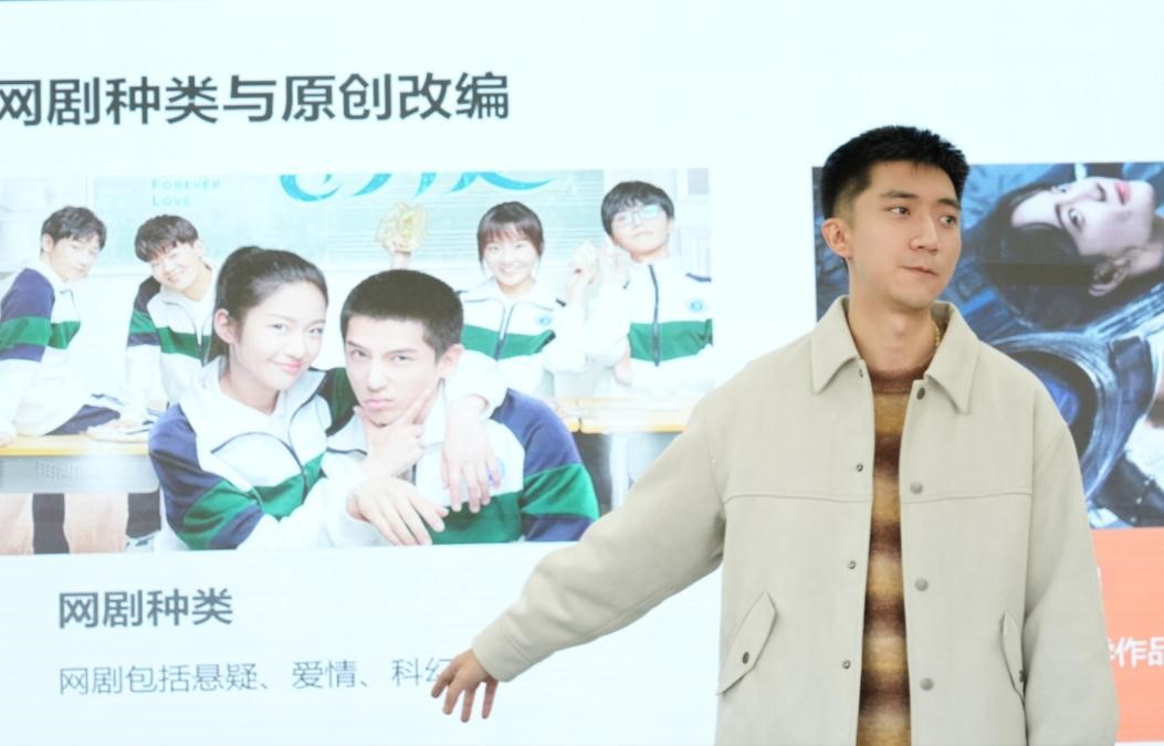 在互动环节,同学们积极提问,就编剧的入行门槛、行业现状等问题向黄子为编剧请教。姜明副院长则结合行业实践和理论研究,提出了关于竖屏剧研究动态的思考与疑问。黄子为编剧一一解答了同学们的问题,并与姜副院长就竖屏剧的研究价值开展简要探讨。最后,姜明副院长对讲座进行了总结,并鼓励同学们在学习阶段要深入思考职业规划,积极探索未来的可能性。