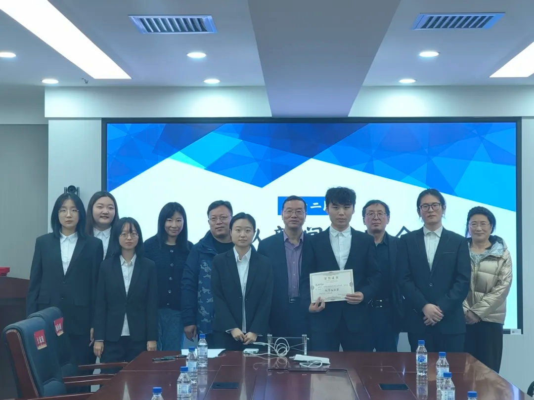 比赛结束后,由严俊老师宣布了决赛结果:研究生组周思岐队获优胜奖,沈树侨队获优秀组织奖;本科生组王可冰宣队、张智勋队获优胜奖,刘媛媛队、戴晟屹队获优秀组织奖。严俊老师为获奖代表队颁奖,评委与获奖代表队合影留念。