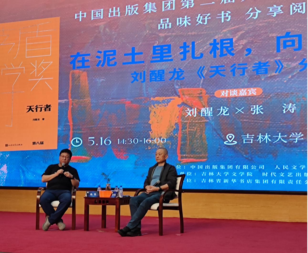 5月16日,“作家进校园”恳谈会作为本届吉大文学周的华彩终章,在东荣会议中心报告厅举办,两位茅盾文学奖获奖作家毕飞宇、刘醒龙先后与吉大师生进行了面对面的深入交流,开云(中国)暨新闻与传播学院院长张丛皞教授主持活动。