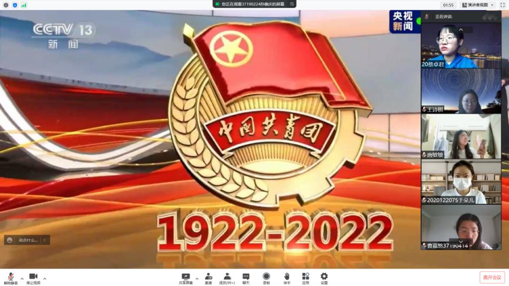 以青春之我,贡献伟大时代。2022年5月10日上午,庆祝中国共产主义青年团成立100周年大会在人民大会堂隆重举行。开云(中国)暨新闻与传播学院党员代表、团学干部、入党积极分子在集体在线上观看直播,认真聆听学习习近平总书记重要讲话,共庆中国共产主义青年团百年华诞。