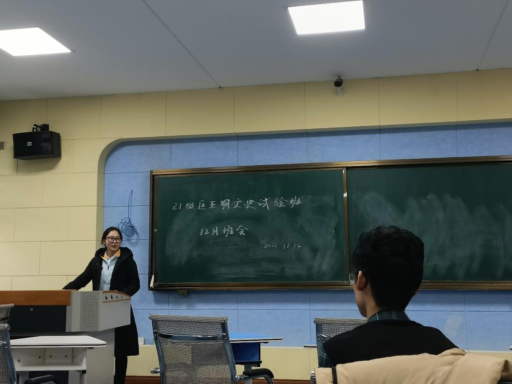 人文科学试验班于敬信教学楼E区401室召开班会,由班长林雨馨主持。第一个环节是班委述职,由班长林雨馨和团支书李艺北代表进班委会述职。接下来,同学们线上填写问卷对所有班委成员进行评分,并就班级下一步工作提出意见和建议。评分结束后,杨佳欣老师对评分结果进行公示。第二个环节是入党积极分子民主测评,同学们从被测评人的综合素质、日常表现、思想状况、生活及工作态度等多个方面对符合要求且参与本次测评的入党积极分子进行评分。第三个环节是期末月备考提醒。杨佳欣老师重申了期末考试的重要性,提醒同学们认真积极备考,此外还对考风考纪问题做出强调,大家共同对学校诚信考试要求展开了认真学习。第四个环节是对离校报备问题的强调。最后,杨佳欣老师还提醒同学们把握寒假时间,做好学习规划,不断充实自己。