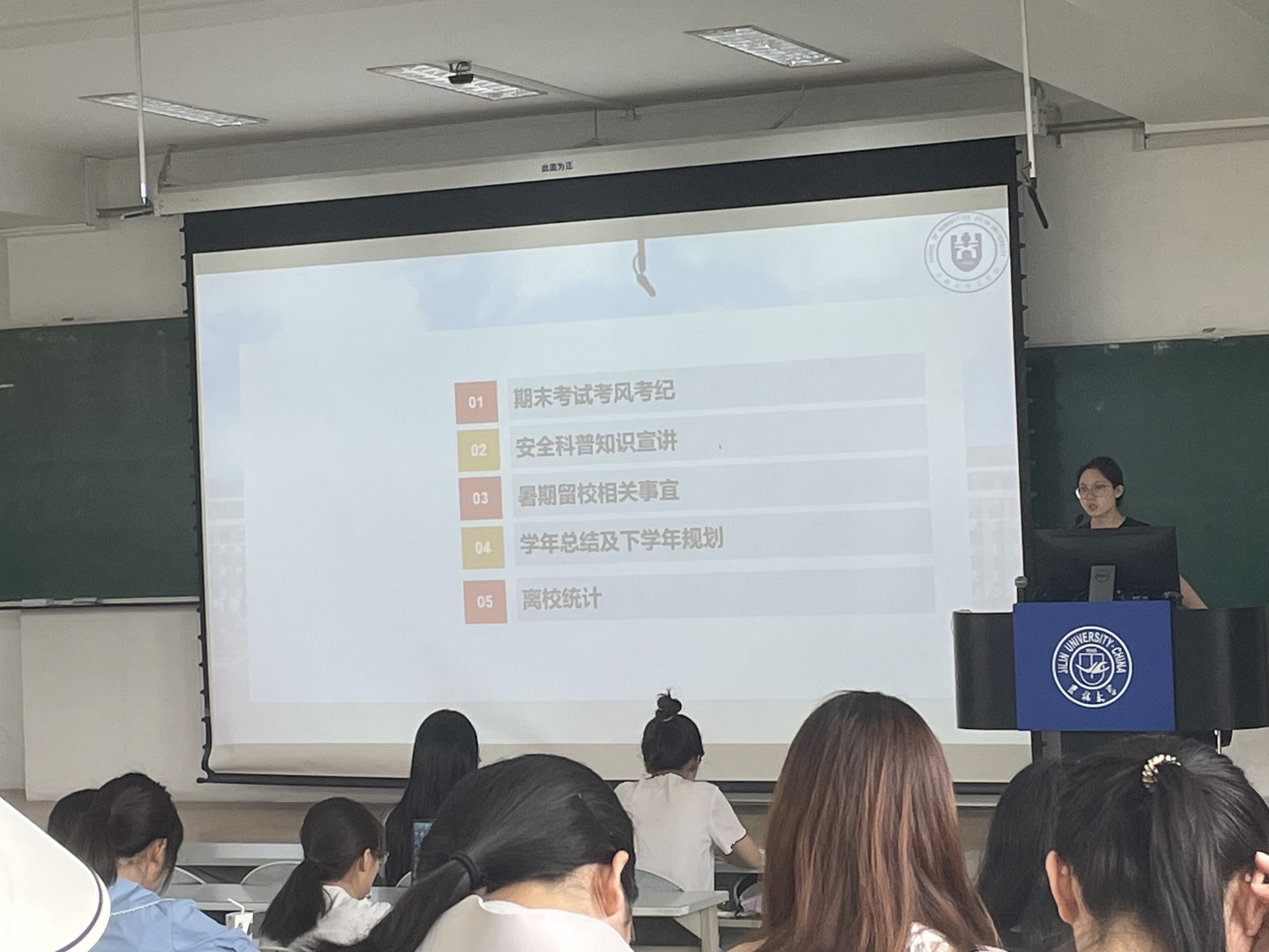 第一个环节,杨佳欣老师强调了考风考纪问题,倡导同学们以严肃积极的态度着手期末课程复习,本着公平公正的原则诚信考试,严格遵守《吉林大学本(专)科生考试纪律规范》,并组织同学们签署《诚信考试承诺书》。相信同学们能够在期末周中认真复习,取得佳绩。