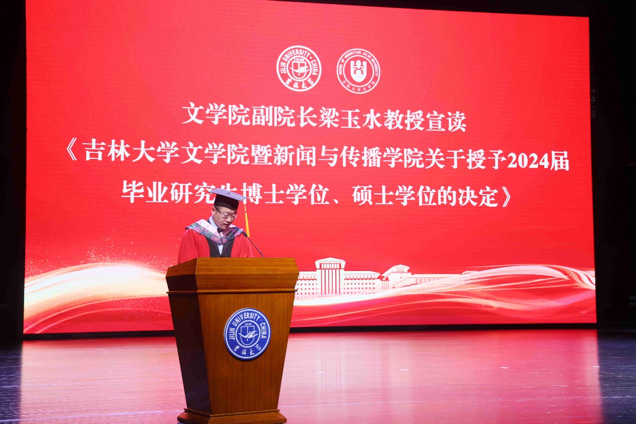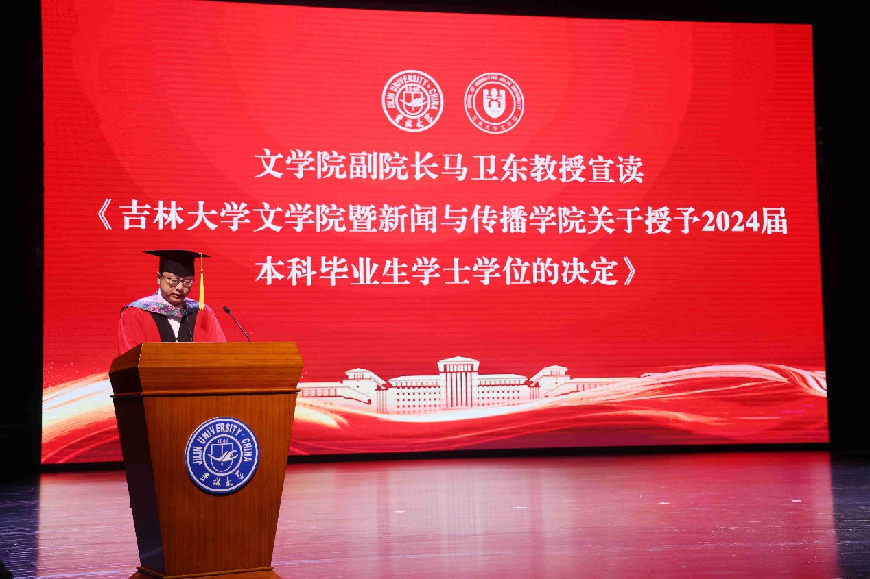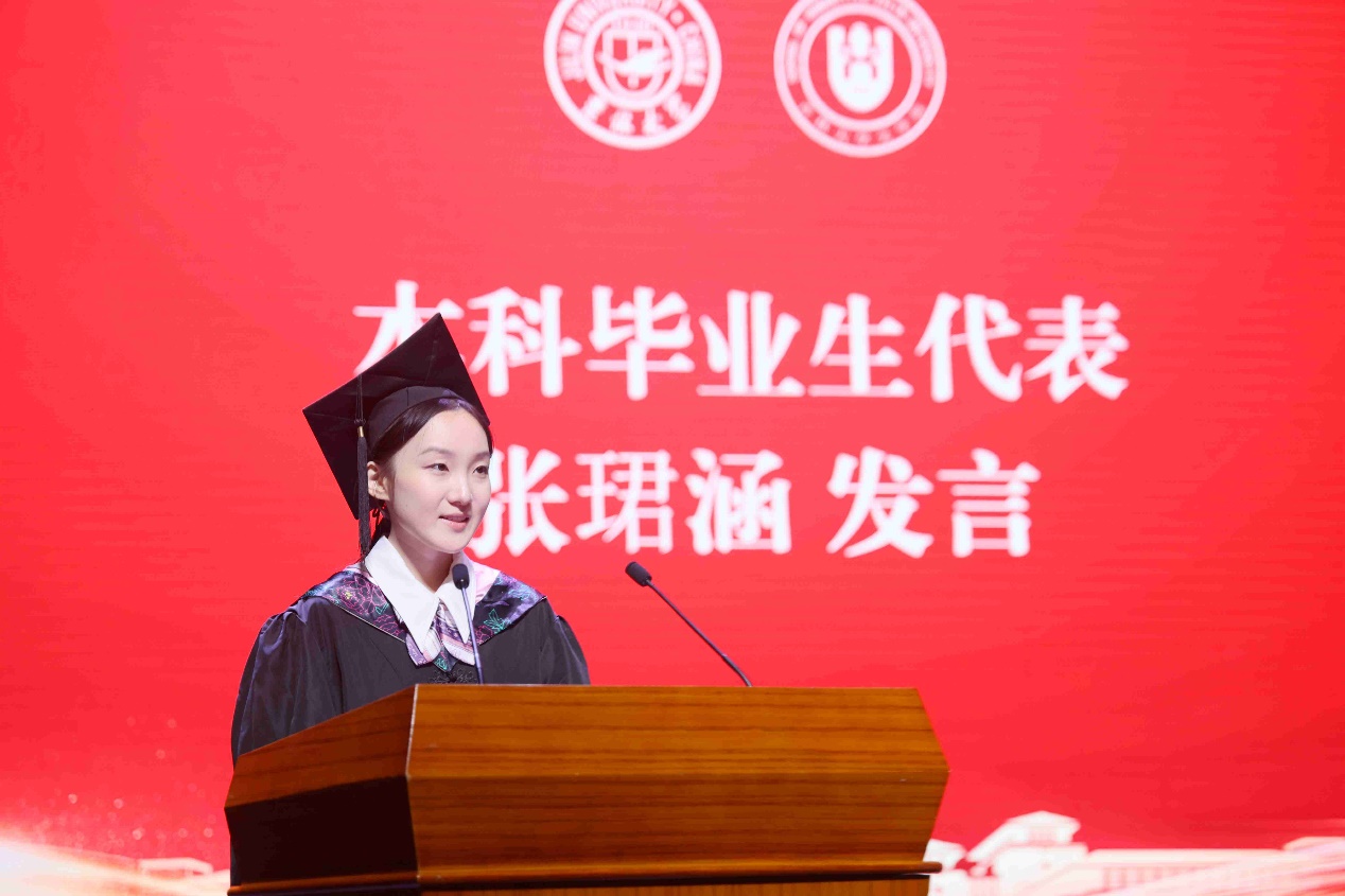 典礼上,本科毕业生代表、吉林大学2023年度十佳大学生、2020级新闻学专业张珺涵同学,毕业研究生代表、2021级中国现当代文学专业博士毕业生王琪同学分别发言,回顾了在学院多年来的求学生涯,表达了对母校、学院、老师、同窗、家人的感谢,坚定了未来秉持“求实创新,励志图强”校训的决心。