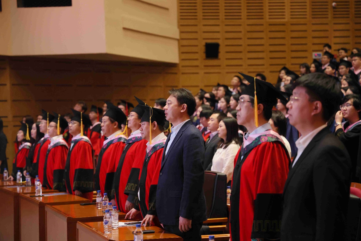 在庄严的国歌声中,学院2024届毕业典礼暨学位授予仪式拉开了帷幕。