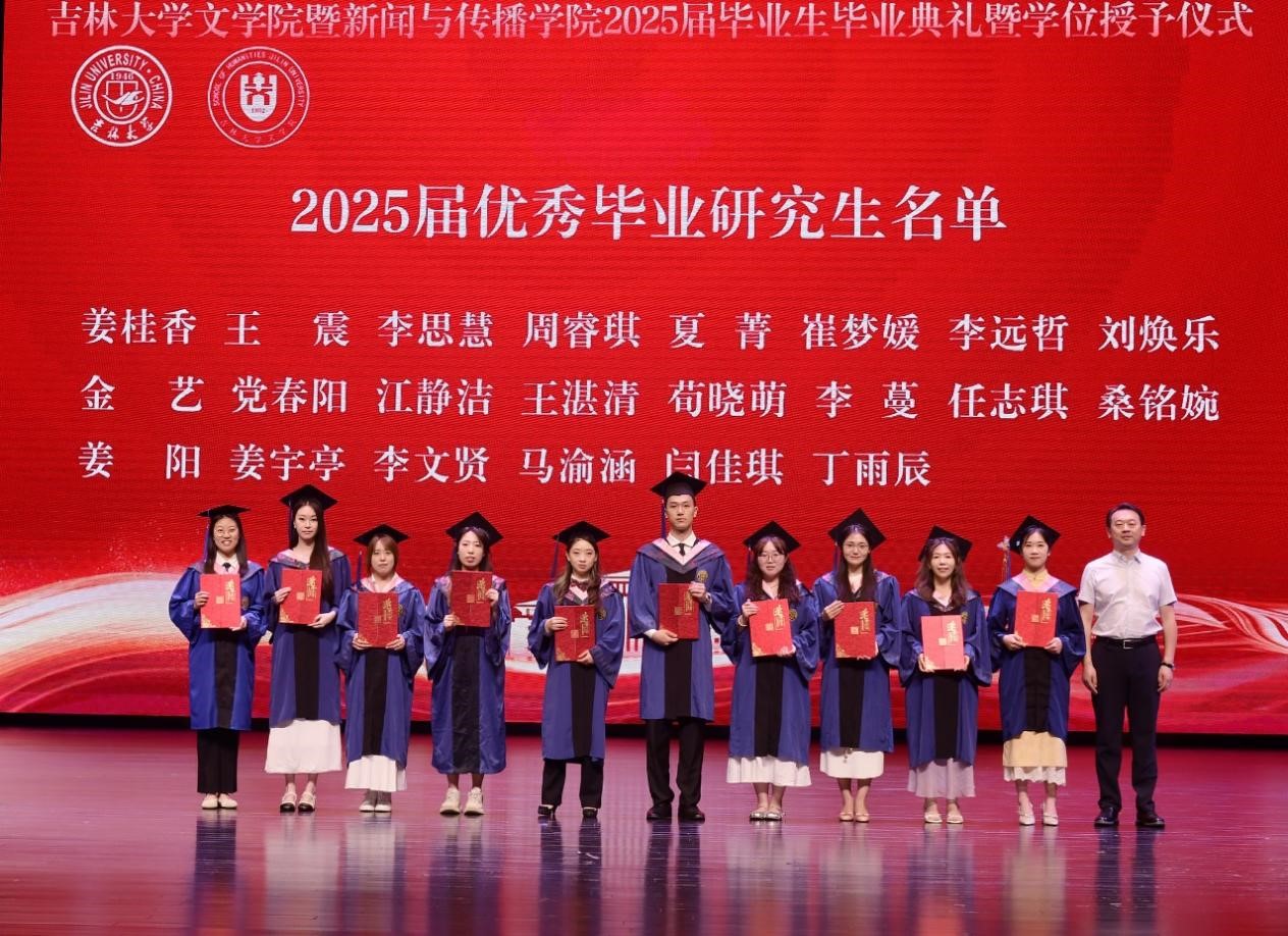 典礼上,新闻与传播学院副院长孔朝蓬宣读获得吉林大学2025届“优秀毕业研究生”“优秀本科毕业生”学生名单,开云(中国)党委书记霍志刚为优秀毕业生颁发荣誉证书并表示祝贺。