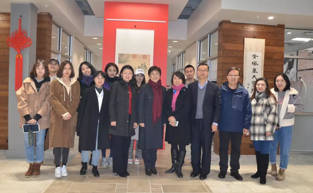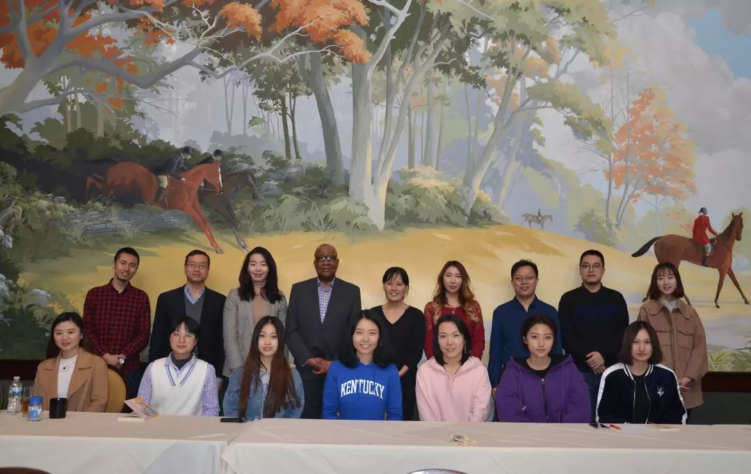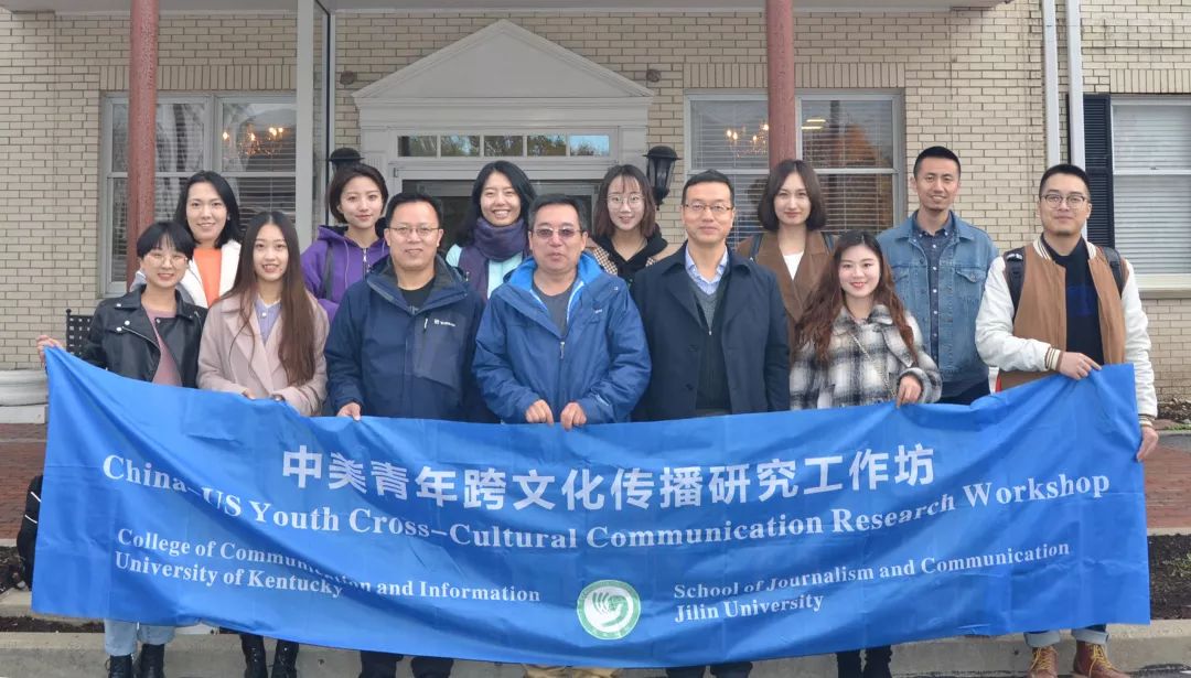 中国驻美国大使馆公使级教育参赞杨新育(前排左五)、教育处二等秘书邹莹(前排左四),肯塔基大学孔子学院院长修华静教授(前排右五)等与吉林大学新闻与传播学院师生合影