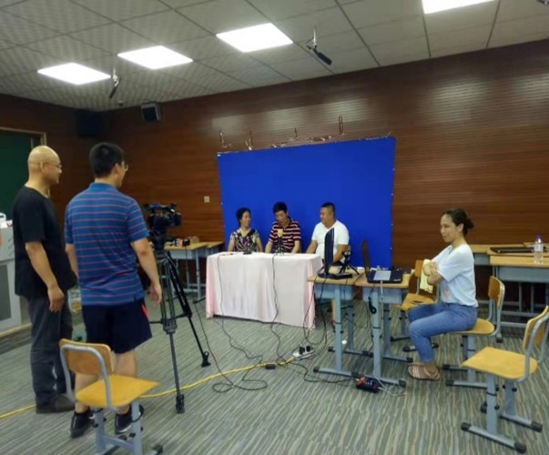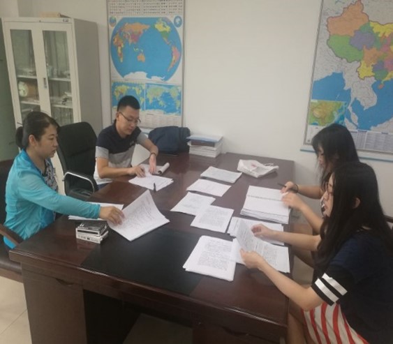 周莉老师带领学生在整理语言调查问卷