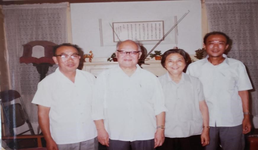 左起依序:唐作藩先生、王力先生、王力先生夫人夏蔚霞女士、许绍早先生