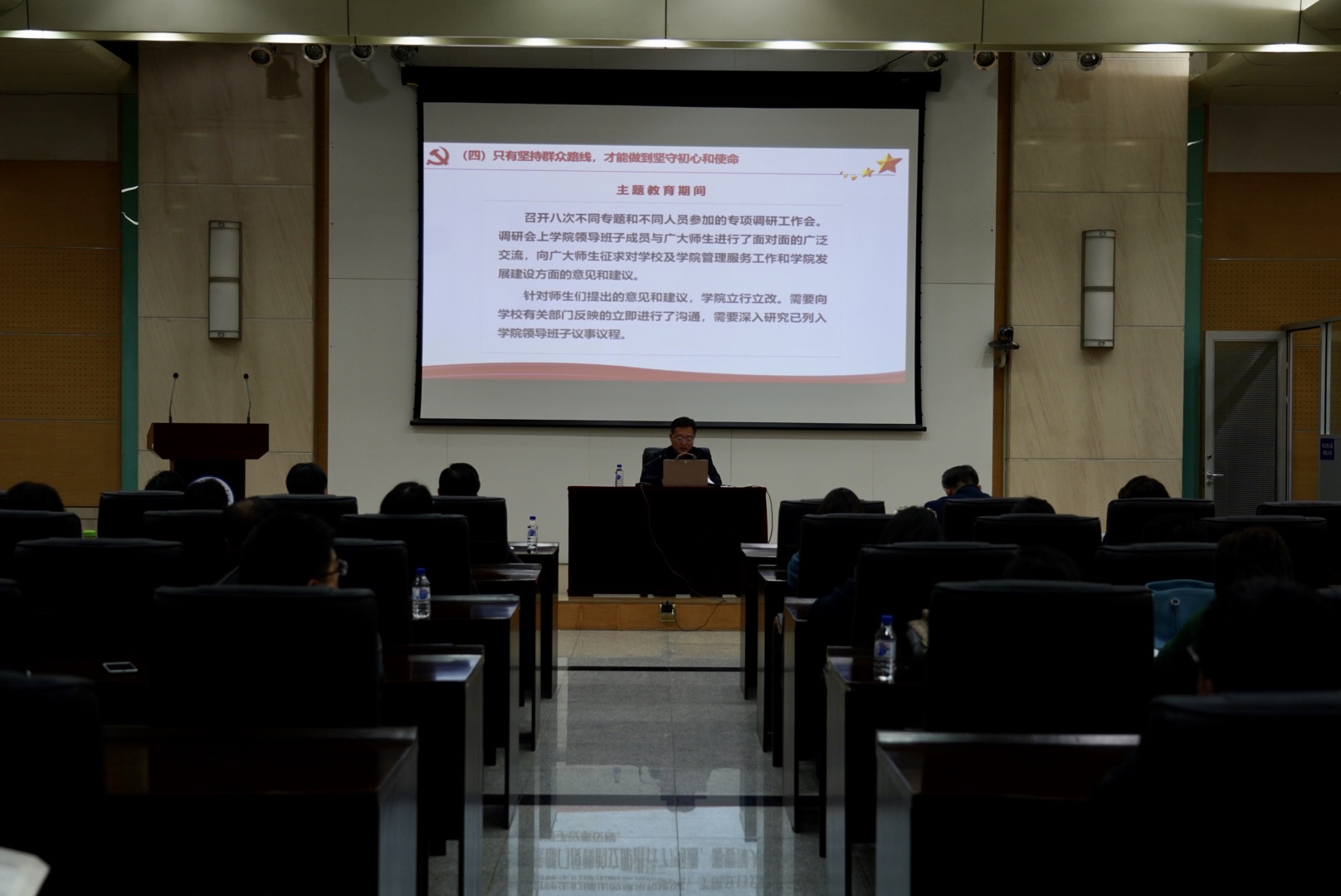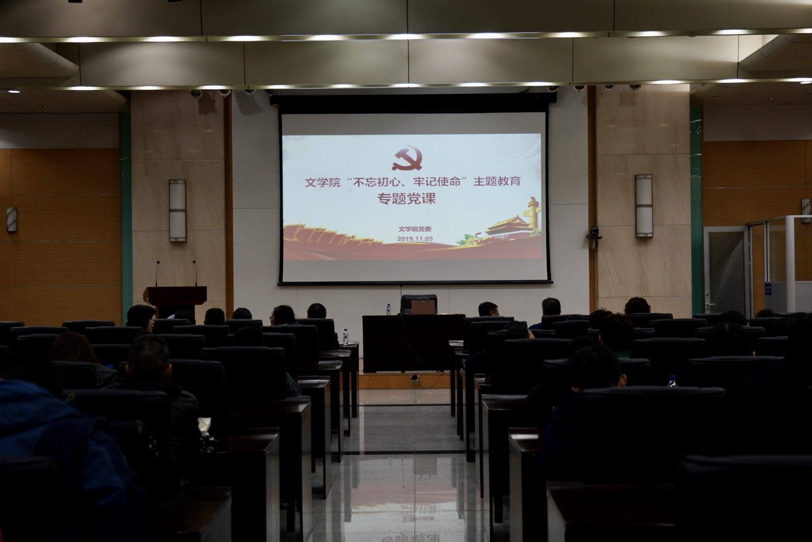 康永刚书记结合学院实际情况、调研成果,从共产党人的初心和使命是什么、共产党人为什么要坚守初心和使命、共产党人怎样坚守初心和使命三个方面出发,重点讲了对中国共产党人“为中国人民谋幸福,为中华民族谋复兴”初心使命的深刻认识和体会。