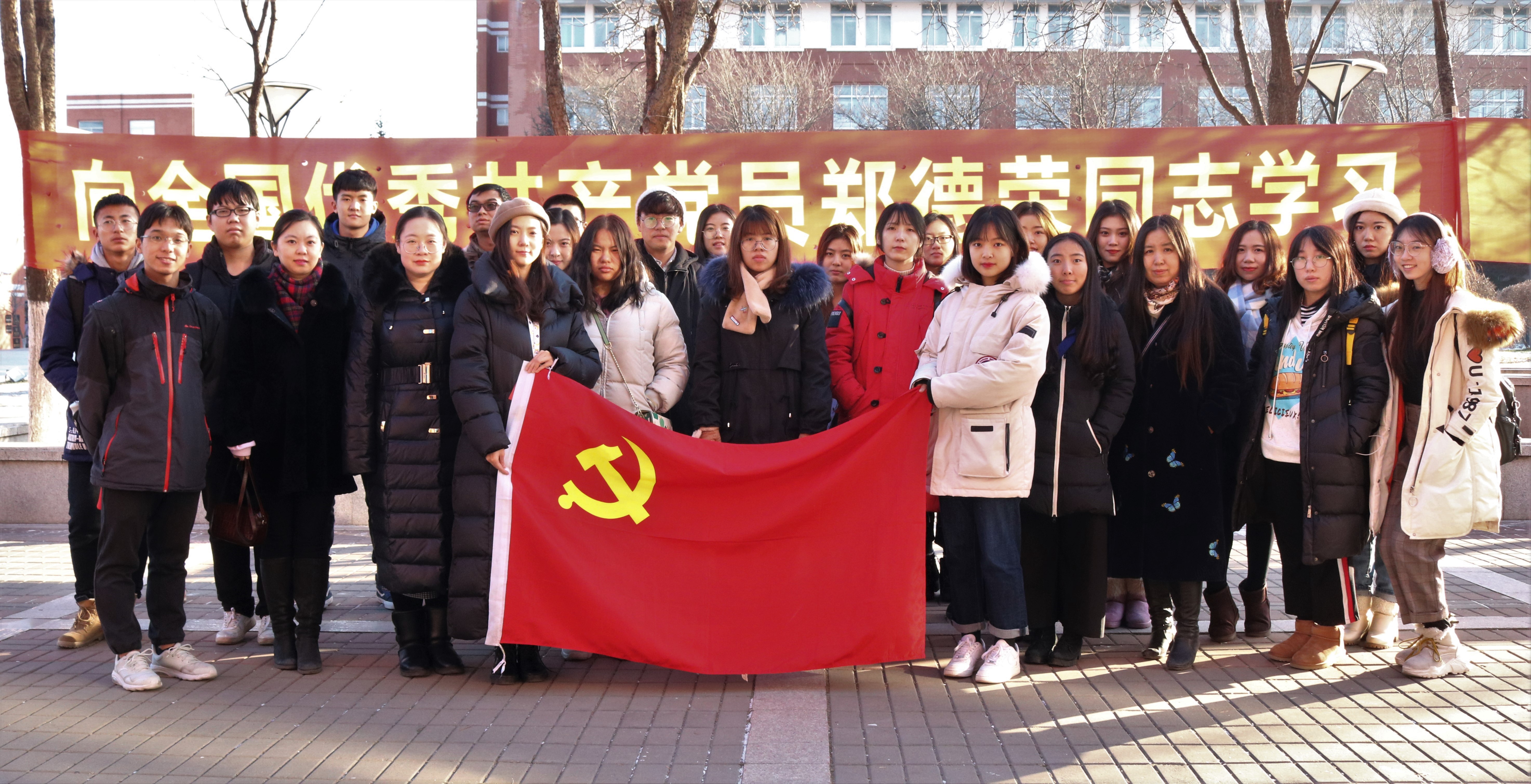 最后,全体党员师生一起在教学楼门前合影留念。
