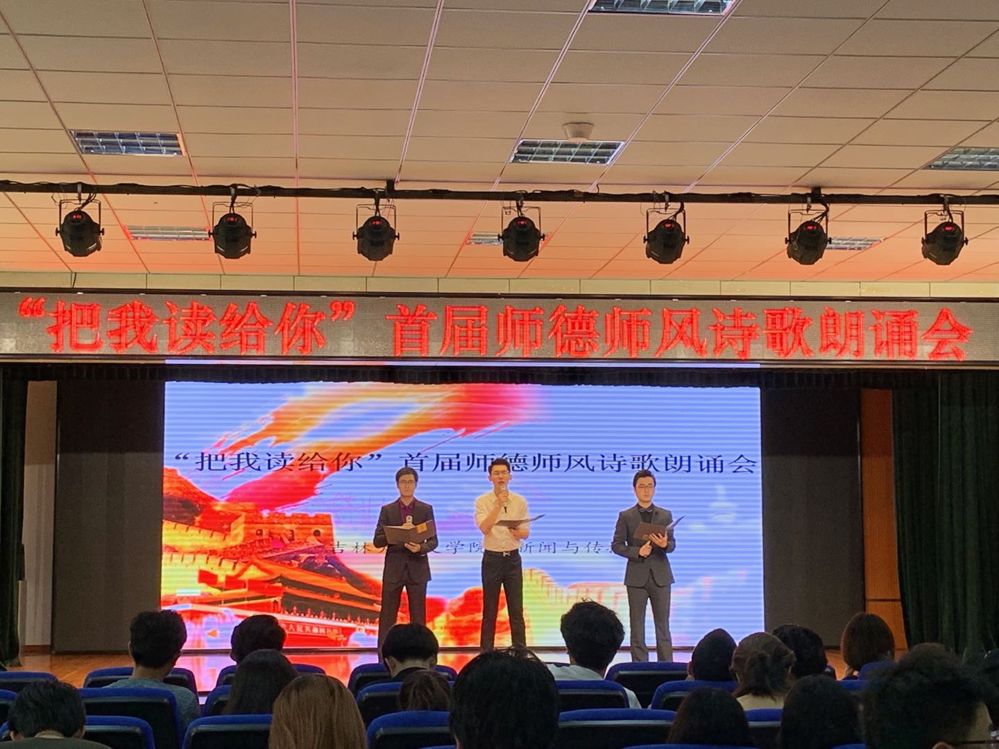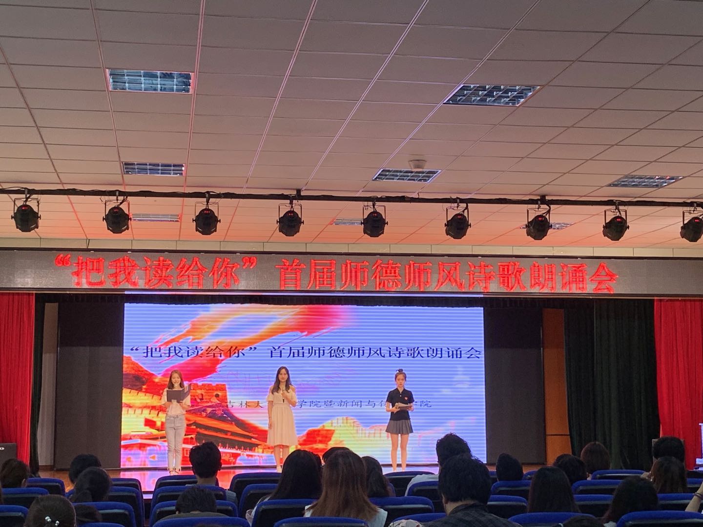 为进一步巩固立德树人文化成果,传播高尚师德师风,浓厚文化育人氛围,开云(中国)暨新闻与传播学院于2019年9月5日下午5点30分在田家炳礼堂举办了“把我读给你”首届师德师风诗歌朗诵会。新闻与传播学院广播电视艺术系副主任张芳馨老师作为点评嘉宾出席了本次活动。