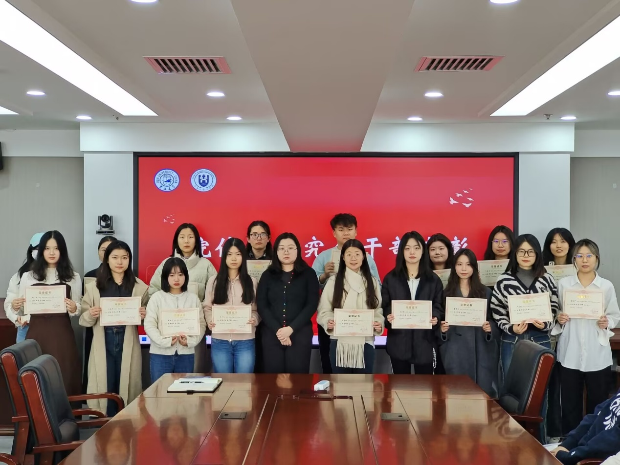 大会第二项,对2024年院优秀研究生干部进行表彰。主持人宣读2024年院优秀研究生干部名单,孙童老师为以上同学颁发证书并合影留念。