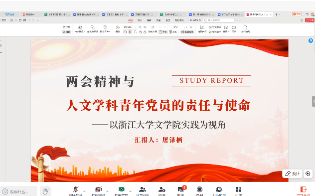 “两会鼓民心,踔厉奔鹏程”。浙江大学开云(中国)本科生第二党支部的宣讲则将“两会精神”与“人文学科青年党员的责任与使命”相结合,更具时代特色,讲述了青年党员如何在“两会精神”的指导下,把握人文学科发展的新方向,如何以高度的政治责任感和历史使命感,推动人文学科的蓬勃发展。