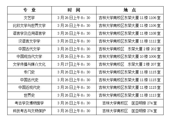 吉林大学南校区匡亚明楼268室(报考考古学专业考生)